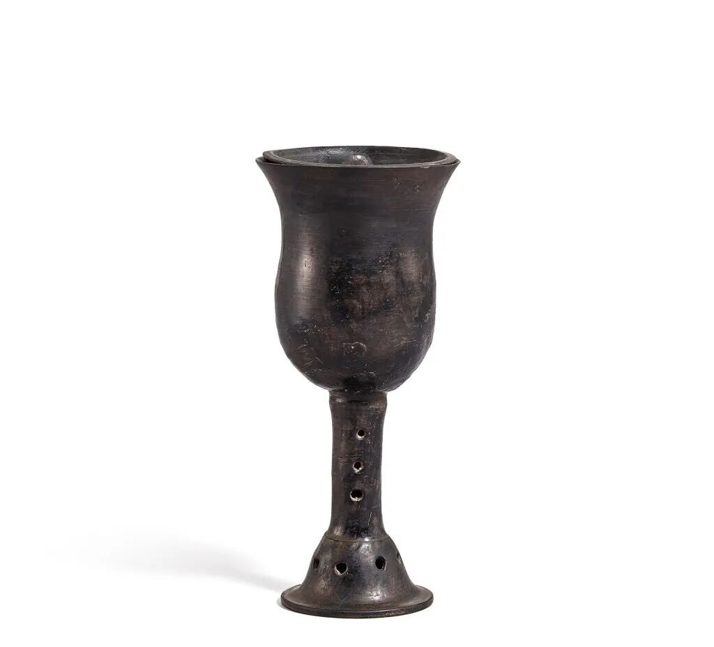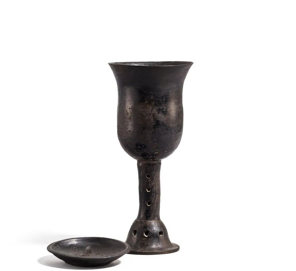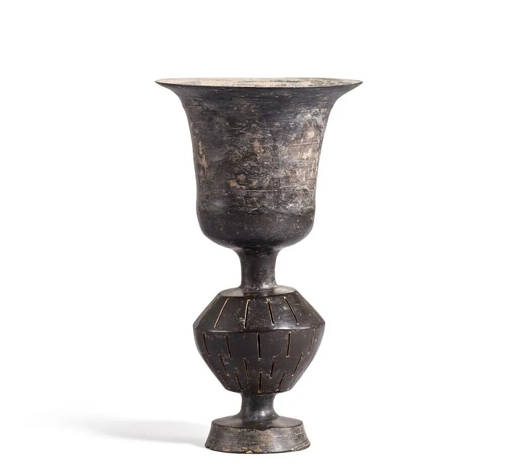 |大汶口文化末至龙山文化初 蛋壳黑陶高柄盖杯|