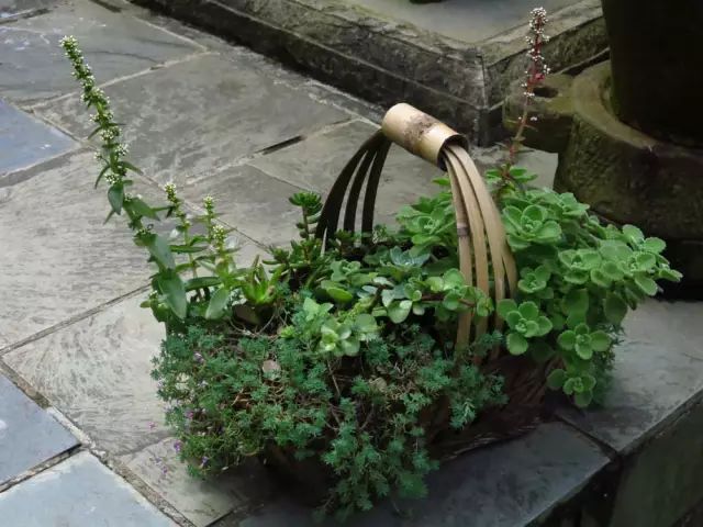 有的多肉挂在吊篮里,