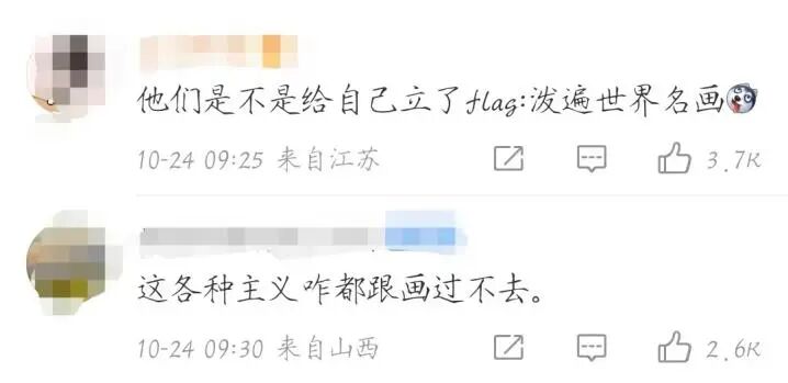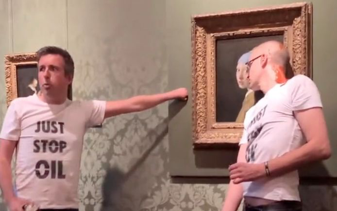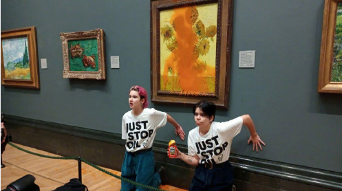 11月4日,数名气候问题抗议者向正在意大利罗马展出的梵高名画《播种者》(The Sower)泼洒豌豆汤,并高喊反对全球变暖和反化石燃料的口号。据悉,这些抗议者来自环保组织“最后一代”(Last Generation),他们表示,该行为是“一种绝望且有科学依据的呐喊,而不是单纯的破坏行为”(a desperate and scientifically grounded cry thatcannot be understood as mere vandalism)。11月5日,环保活动人士在西班牙马德里普拉多博物馆的墙上写下“+1.5℃”字样,并用粘合剂将手粘在西班牙浪漫主义画派大师弗朗西斯科·戈雅的两幅画作上,以表示对人类在面对全球暖化上毫无作为的抗议。这两幅画作分别是《裸体的玛哈》(The NakedMaja)和《穿衣的玛哈》(The Clothed Maja)。据悉,这些人来自环保组织“未来蔬菜”(Futuro Vegetal),“+1.5℃”指的是《巴黎协定》把升温控制在1.5℃之内的目标,而此前不久联合国正式宣布“已经不可能将全球变暖控制在 1.5℃” 。11月发生的事件并非偶然,艺术品们也不是第一次“品尝到食物的滋味”。意大利乌菲兹美术馆的镇馆之宝之一,桑德罗波提切利的《春》(Allegory of Spring),遭到意大利环保组织“最后一代”(Ultima Generazione)的成员袭击,他们用白色的强力胶将自己的手粘在了这幅画上,旨在唤醒人们的环保良知,防止气候变化,别再使用煤气与天然气。10月14日,“停止石油”(Just Stop Oil)环保组织的两名成员向收藏于英国国家美术馆的梵高名画《向日葵》(Sunflowers)泼洒了两罐番茄罐头,接着用胶水把自己粘在墙上,向参观者发出质问:“什么更有价值,艺术还是生活?”10月23日,德国波茨坦巴贝里尼博物馆一幅正在展出的莫奈画作《干草堆》(Les Meules)被“最后一代”的气候保护主义者泼了土豆泥,自称“为了警醒世人‘气候灾难已经来临’”。10月27日,收藏于荷兰海牙莫瑞泰斯皇家美术馆的维梅尔名画《戴珍珠耳环的少女》(Girl With a Pearl Earring)成为激进环保人士的破坏目标。这一次,围观群众愤怒了,在现场视频中,可以听到群众们对其“obscene”(卑贱下流)的叱骂。然而,他们的愤怒或许正是这些激进环保人士想要达成的效果,他们表示:“当看到美丽的无价之宝在你们面前被破坏时是什么感觉?”“愤怒吗?很好。那你们看到地球被摧毁时的愤怒去哪里了?”《蒙娜丽莎》、《最后的晚餐》、《梵高自画像》……诸多大师名画都没能逃过这些环保组织的魔爪,非但如此,他们还变本加厉,有把自己用扎带捆在比赛中的绿茵场上的、有成群结队阻碍交通的、还有去汽车展厅团坐抗议的:不过,比起博物馆投鼠忌器的工作人员,汽车展厅的工作人员显然对他们的行为不屑一顾,工作人员直接到点下班,锁门回家,无视了这群“科学家反叛”(Scientist Rebellion)组织成员的存在。在冷冰冰的展厅里呆了一晚上后,组织者格里马尔达(Grimalda)坐不住了,停止了活动,并且发推抱怨工作人员关掉了暖气。(笔者想说:Hmmm这位大哥,你还记得你是环保人士吗?关掉暖气不好吗?这盛世正如你所愿啊!)(是的,上面绝大多数遭殃的名画,万幸因为有玻璃的保护,基本都没有受到太大的损伤)有讽刺染发、穿牛仔裤的环保人士本身就是在浪费石油资源的:(染发剂是石油附属产物,而牛仔裤的制成过程非常不环保)(笔者不禁发出感慨:不愧是从小被教育“谁知盘中餐粒粒皆辛苦”的中华儿女。)(笔者也想说,有这浪费食物破坏艺术品的功夫,种棵树倒是更务实一点呢!)或许有人会觉得,不管手段如何过激,他们的初衷总是为了保护地球。但事实是,这些极端举动都是有预谋、有规划的,他们当真是为了呼吁人类重视环保吗?他们所做的事,哪一件不是加重了资源的浪费?更讽刺的是,他们的幕后金主,正是以石油产业发家的富豪。根据西班牙《世界报》网站10月24日报道,洛克菲勒、肯尼迪、盖蒂、迪士尼等人的后代都为这些环保组织捐赠了大笔资金。约翰·洛克菲勒曾凭借1870年成立的美孚石油公司赚取了超过数十亿美元,他的后代丽贝卡·洛克菲勒与另一名家族成员彼得·吉尔·凯斯联手在2020年发起了“方程式”运动组织。艾琳·盖蒂的祖父,也就是上世纪60年代世界首富保罗·盖蒂,也是以石油发家。这些极端人士宣扬禁渔禁牧,抵制开采石油,反对浪费粮食,却冲进超市倾倒牛奶、向世界名画泼洒罐头,所作所为,自批其颊,岂止荒唐二字可言!热爱艺术和保护环境,从来都不是对立面,遑论已经安息多年的梵高、莫奈、戈雅、维梅尔和他们的精心之作,何其无辜?梵高创作《播种者》,无疑受到了米勒的影响(米勒尤喜以农民为创作对象),他用黄蓝双色的鲜明对比描绘出了夕阳下的麦田,整体画风也与他后期用色大胆炽烈的风格十分吻合,可谓是梵高后期的经典画作。夕阳西下本是一天宣告终结之时,播种者却又象征着新生的希望,即使在病痛中,梵高仍然在努力表达着对生命的热爱和追求。再比如戈雅,这个风格多变的大师,一度被人称作疯子,可这个疯子为了揭露侵略者军国主义的暴行,勇敢地用自己的画笔画下了那幅著名的《1808年5月3日夜枪杀起义者》。有传言说这是戈雅亲自跑到堆尸处画下的现场,不管传言是否是真,他都是一个竭尽自己所能宣扬和平的斗士。相比之下,在笔者看来,这些激进环保组织的行为除了哗众取宠和背后资本利益既得者表现出来的假仁假义,显得多么可笑又多么虚伪。他们有时间向名画泼洒不明所以的