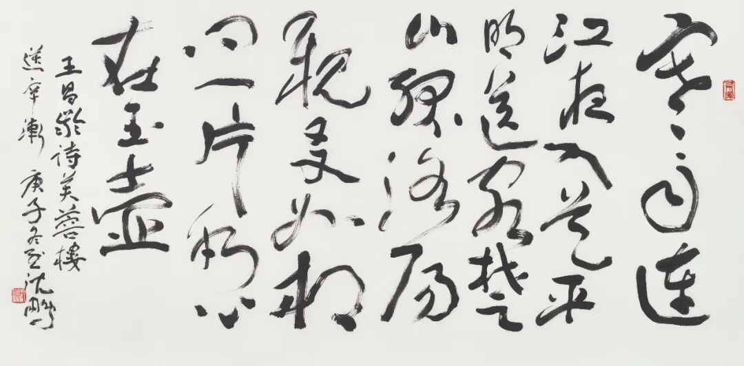 释文:寒雨连江夜入吴,平明送客楚山孤。洛阳亲友如相问,一片冰心在玉壶。王昌龄诗芙蓉楼送辛渐。庚子冬至,沈鹏。