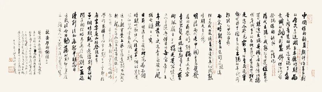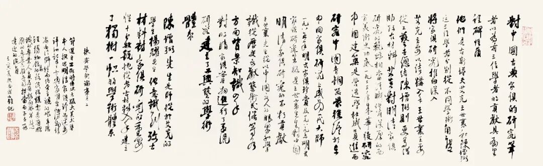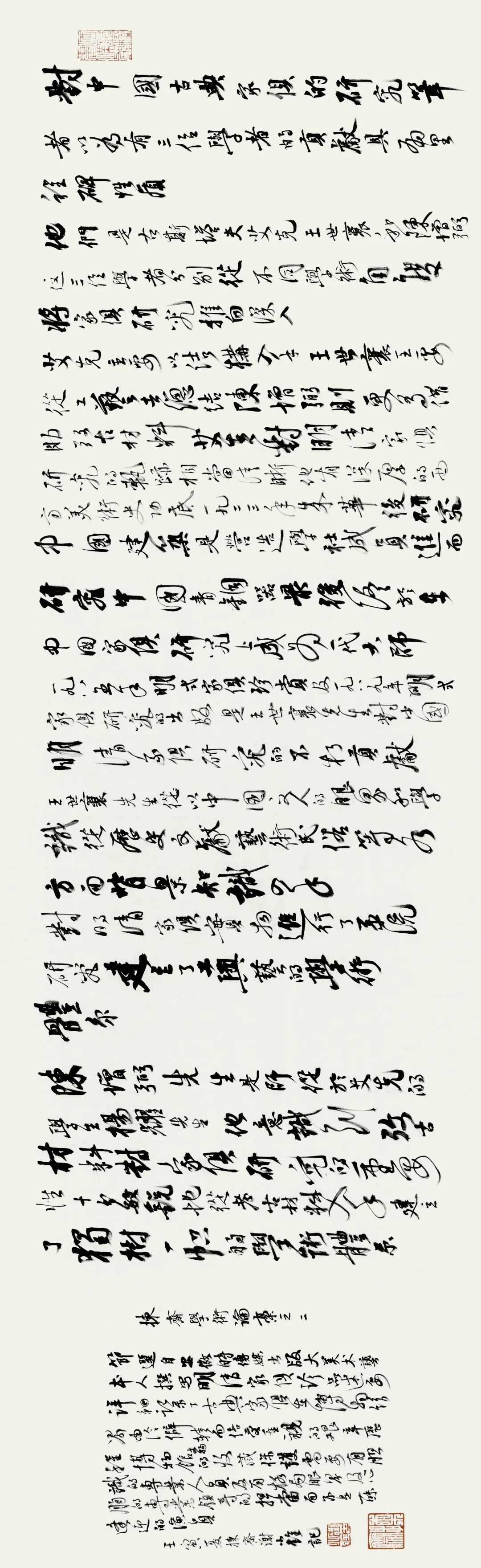 谢小铨原来在博物馆和文物单位工作,书法是他的工具,现在他到了国家画院,成了专门从事书法创作、研究的书法家了,这是一个 转型。在这个转型中,他没有丢掉原来的长处,这次展览有所显现。