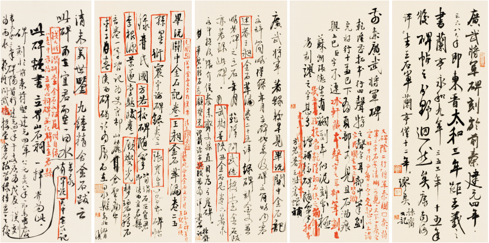 书展作品最后一部分是金石碑帖跋,尤其突显其字内字外功夫,金石气、书卷气洋溢其间,很是了得。这是此展最精彩照人的一部分。