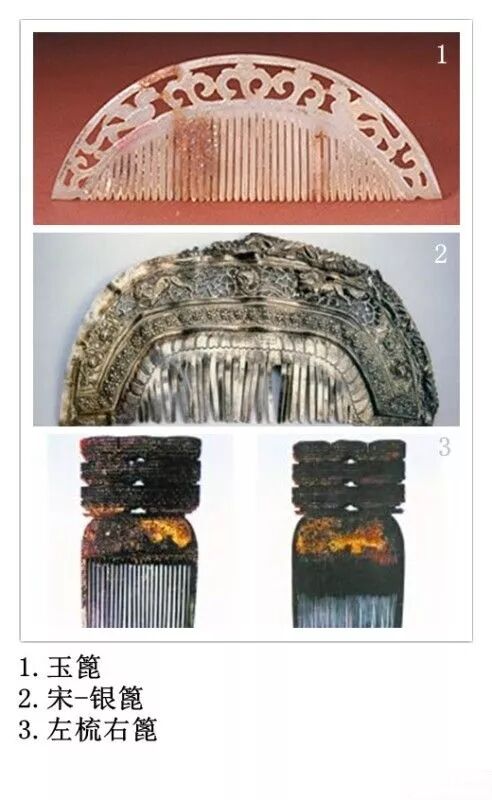 隋唐五代的梳篦,多作成梯形,高度明显降低,其质料及装饰视用途而别。宋朝以后,梳子的形状趋于扁平,一般多作成半月形。明清时期的梳篦样式,基本保持宋制。