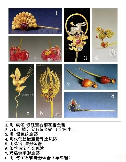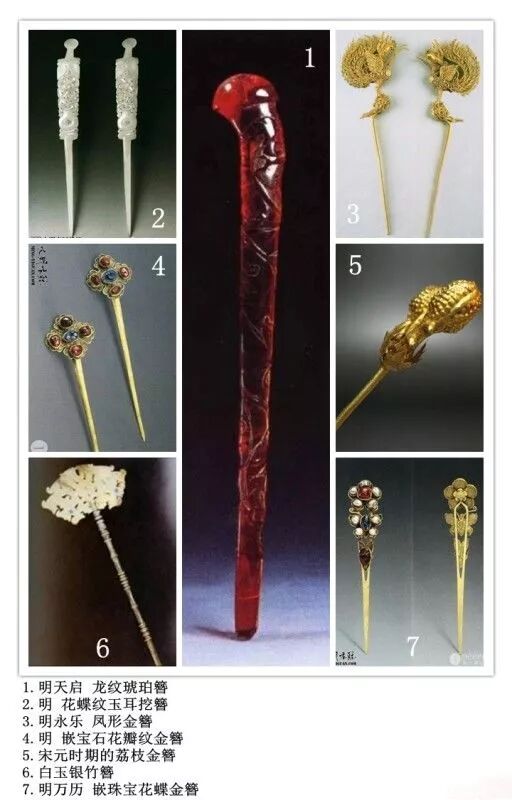 簪,是由笄发展而的,是古人用来绾定发髻或冠的长针。可用金,玉,牙,玳瑁等制成。后来专指妇女绾髻的首饰。擿,簪股,将头部做成可搔头的簪子,所以俗称为搔头。《西京杂记》记载:汉武帝过李夫人,就取玉簪搔头,自此后宫人搔头皆用玉簪。《后汉书。舆服志》有:“黄金龙首衔白珠,鱼须擿,长一尺,为簪珥。”的记载。