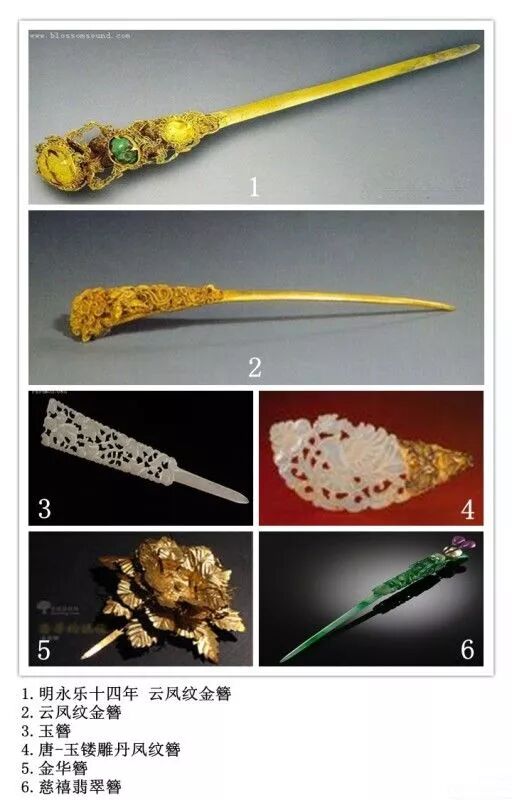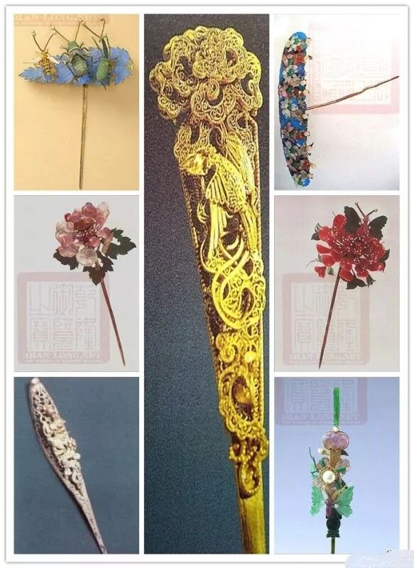 簪头的雕刻有植物形,动物形,几何形,器物形等,造型多样,其图案多具有吉祥寓意。另外簪头造型做扁平一字型的成为扁方,原为满族妇女用的大簪,也是簪的一种。簪子是东方妇女梳各种发髻必不可少的首饰。