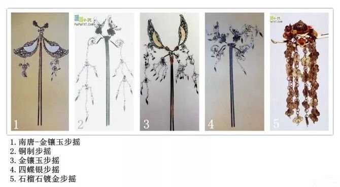 步摇,是古代妇女的一种首饰,取其行步则动摇,故名。其制作多以黄金屈曲成龙凤等形,其上缀以珠玉。六朝而下,花式愈繁,或伏成鸟兽花枝等,晶莹辉耀,与钗细相混杂,簪于发上。古代妇女附在簪钗上的一种首饰。《释名。释首饰》:“步摇上有垂珠,步则摇动也。”《后汉书。舆服志下》:“步摇以黄金为题……”王先谦集解引陈祥道曰:“汉之步摇黄金为凤,下有邸,前有笄,缀五采玉,以垂下,行则动摇。”白居易在《长恨歌》中用:“云鬓花颜金步摇,芙蓉帐暖度春宵。”来形容杨贵妃。
