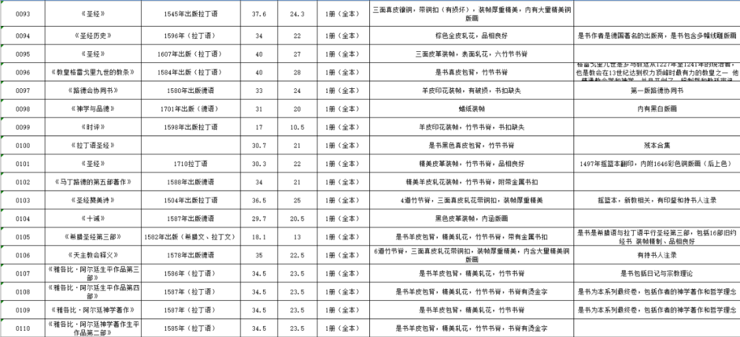 本次北京保利秋季拍卖会有幸收集到了一批珍贵的基督教文献其中囊括了大量的圣经。其时间跨度之久:从后中世纪的黑暗时期到我们如今生活的21世纪;其内容多彩:精美的神父礼拜用圣经到19世纪儿童用圣经绘本;丰富乃至近十种不同的语言....除了圣经以外此批文献同时包罗了大量的用各种语言不同年代书写的祈祷书、灵修书、福音书、说教集、教会史和诗篇集等各种宗教读物,其中更是不乏中世纪早期著名神学家的手记,早期的手抄祈祷本,宗教改革运动时期的出版物和一些珍贵的名家版画集。这批文献共计926种,总数近千册,除其文献内容完全可称得上是值得深入研究以外,此批文献也是人类书籍装帧艺术发展的见证,收藏价值极高。