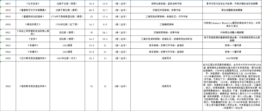 1.此批基督教文献体量巨大,达926种,并附有单幅圣经版画数十幅。