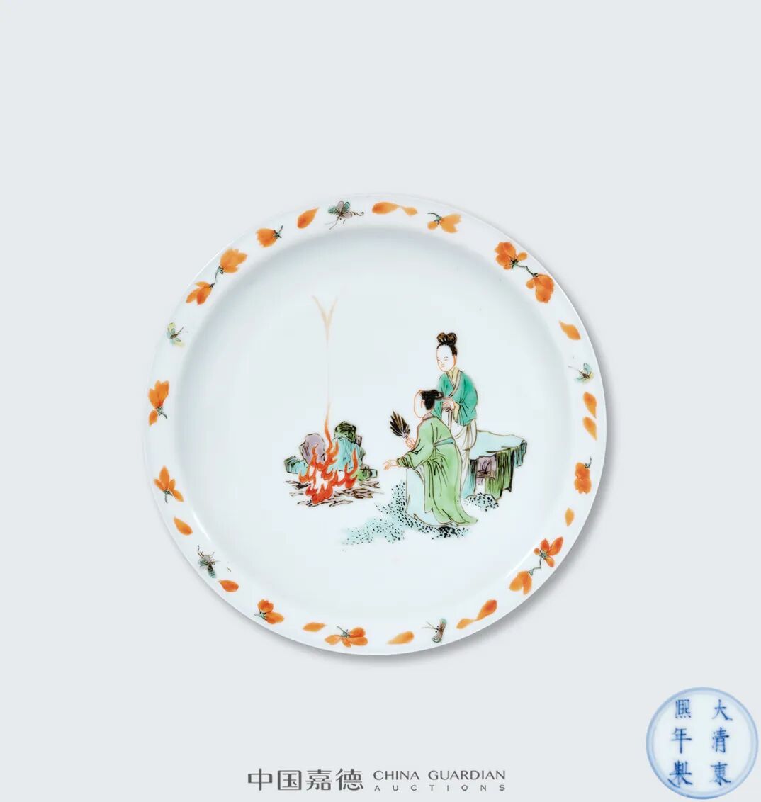 清康熙 五彩仕女图折沿盘