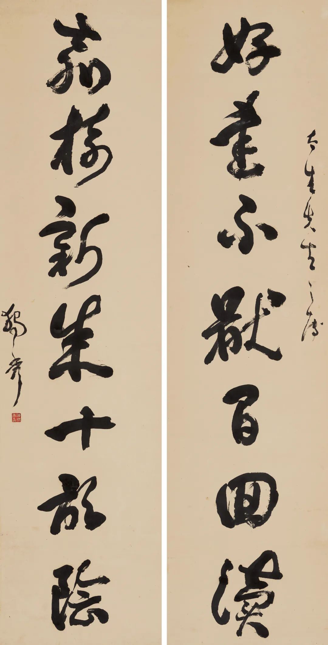 薛太生上款。薛太生与陈独秀相识于赶考之时,遂成莫逆之交。后来陈独秀在南京坐牢,薛太生经常去探望,并赠送酒水、衣物。因此交情,陈独秀为薛太生写下了这副墨气淋漓、笔力遒劲的草书对联。作品由上款人家属提供。