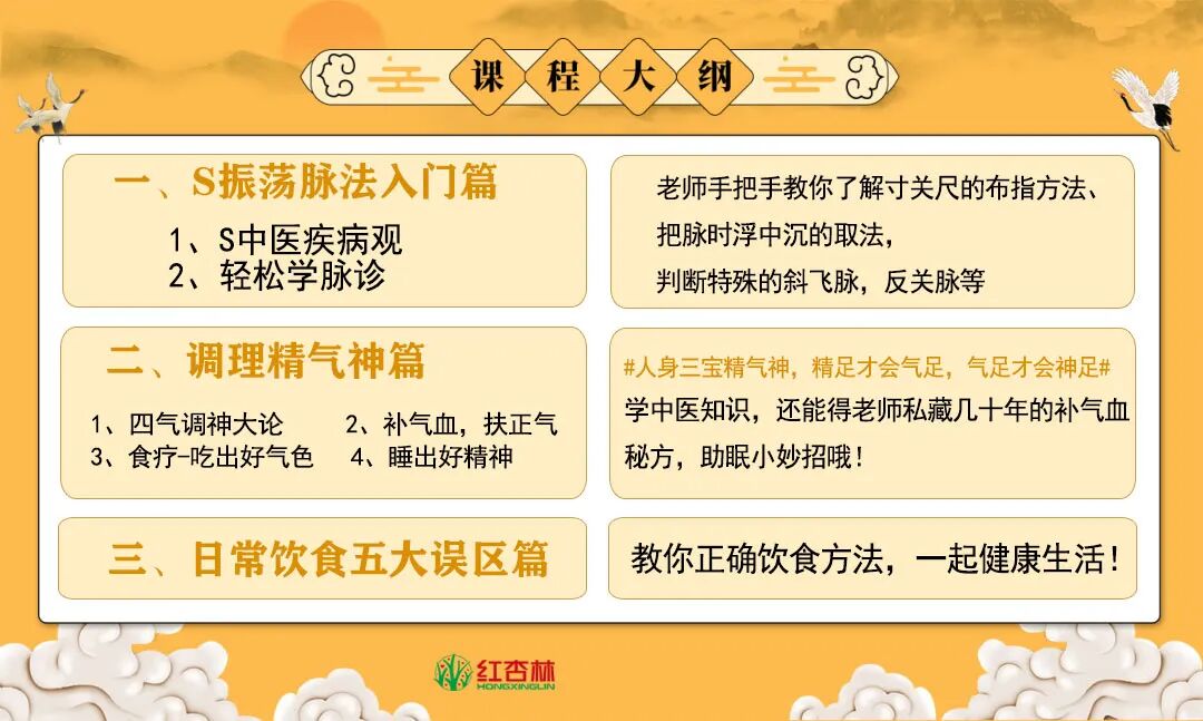 向右滑动查看更多图片不用再担心半途而废,我们不仅有老师帮助你,还有一群志同道合的同学,大家一起交流案例、巩固脉法知识,一起进步!√你可以通过补气血秘法,扶正气,调精气神,年轻好几岁;