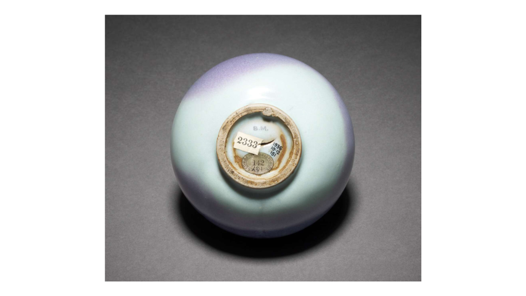 宋 钧窑月白釉紫斑鸡心罐 大英博物馆藏