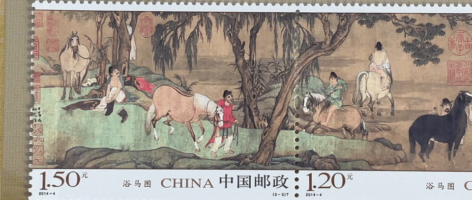《浴马图》邮票不管是设计还是铸造工艺都极为讲究。收藏这一套邮票等于收藏了一幅古画,具有极高的艺术鉴赏价值。