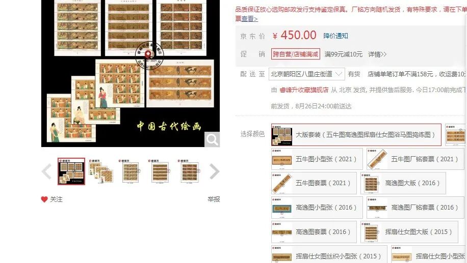 《捣练图》《浴马图》《挥扇仕女图》《高逸图》《五牛图》5款组合售价就已达450元!