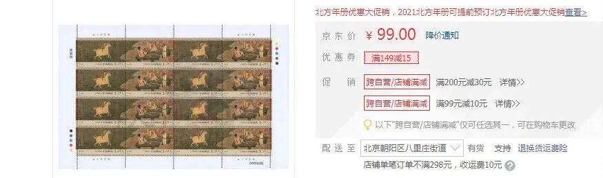 名画邮票中不少邮票因发行较早,存世量随着消耗越来越少,“物以稀为贵”,在各大电商平台,价格一点都不低。