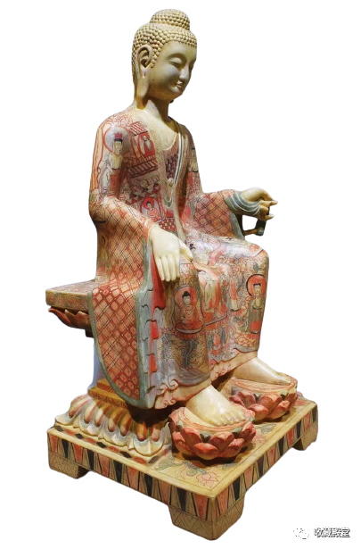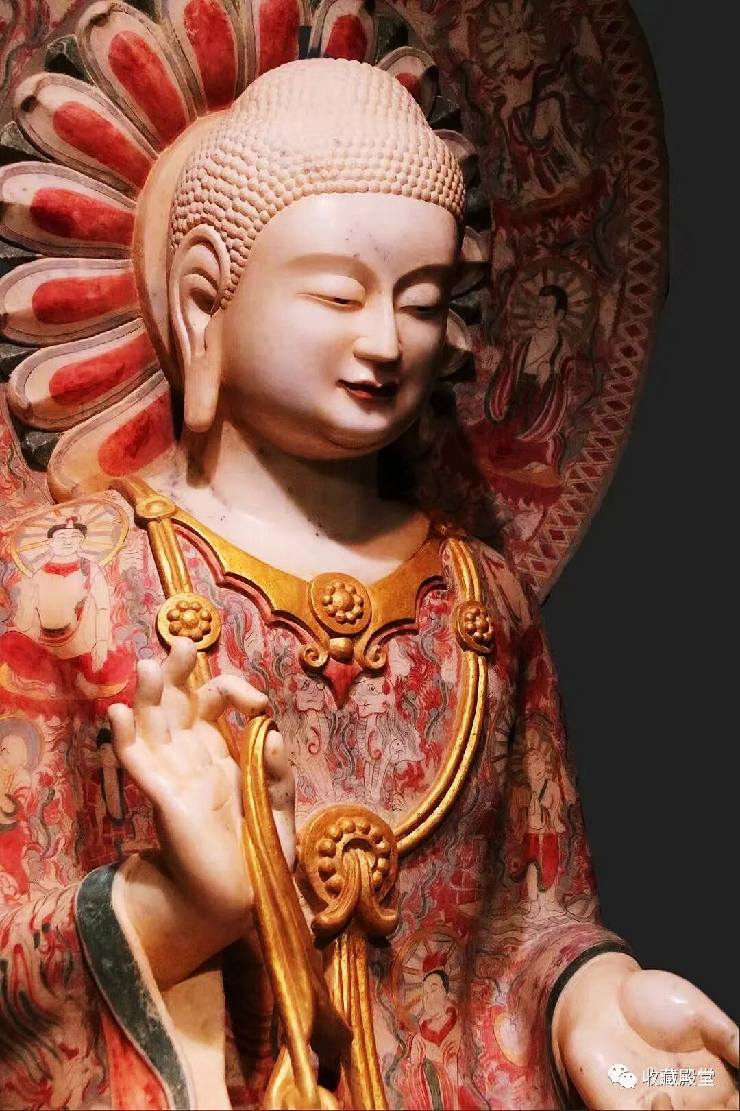 由于北方多山,而且都是石山,所以北魏时期开凿了无数洞窟以及佛像。北魏时期崇尚以瘦为美,所以北魏佛像的汉白玉雕像艺术造型都是身材窈窕、仙佛秀骨。神情都是微笑、娴静、活泼、清秀、温和。其中,有不少彩漆装饰的,本文介绍的这一组北魏汉白玉彩绘佛像,以汉白玉的细腻表现出人体肌肤的润泽感,用大漆的红色为基调,辅以少许金色和墨色,融合出洁白细腻、吉祥喜庆、慈祥清静的氛围,形成了佛教艺术史上唯一的风格,给人以极高的艺术享受。