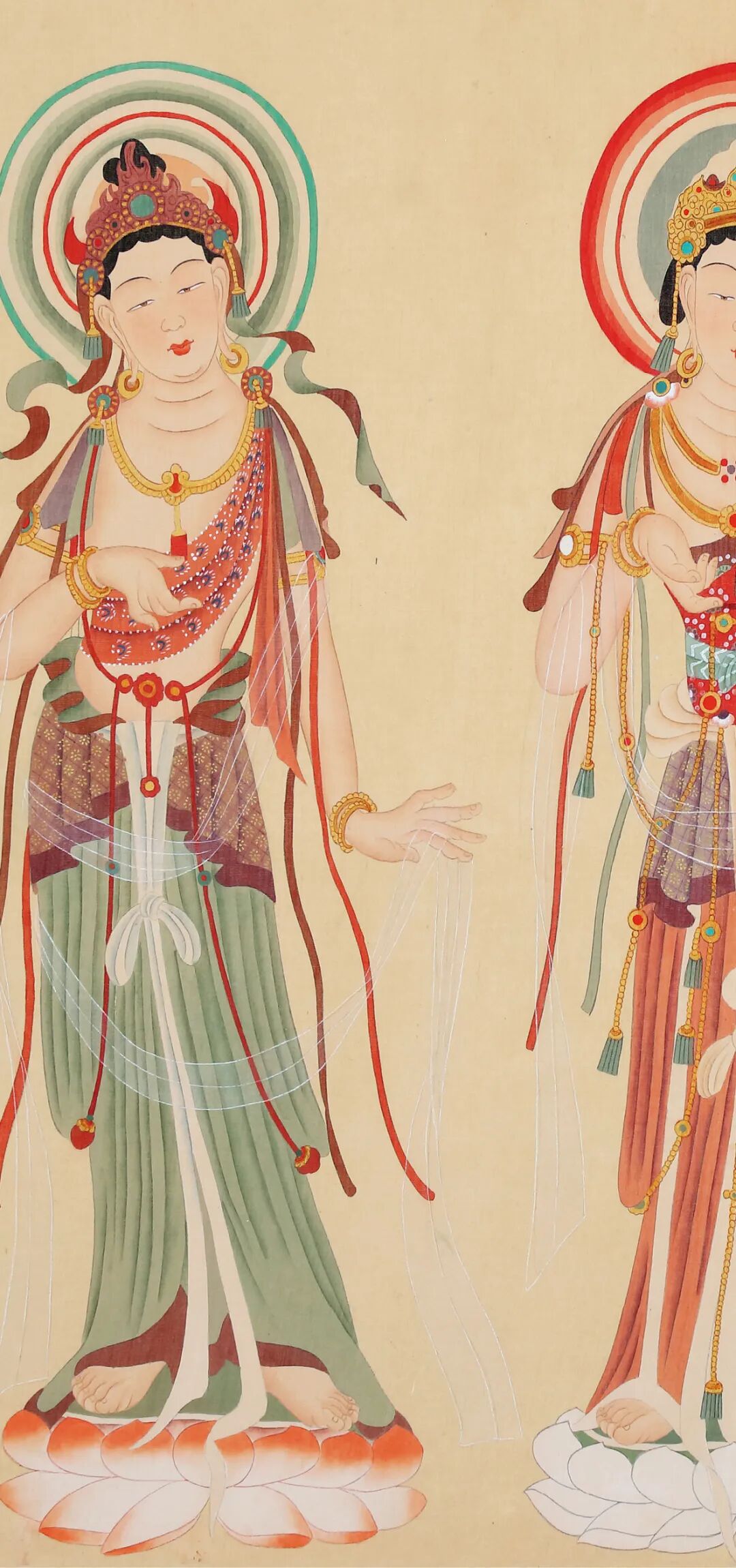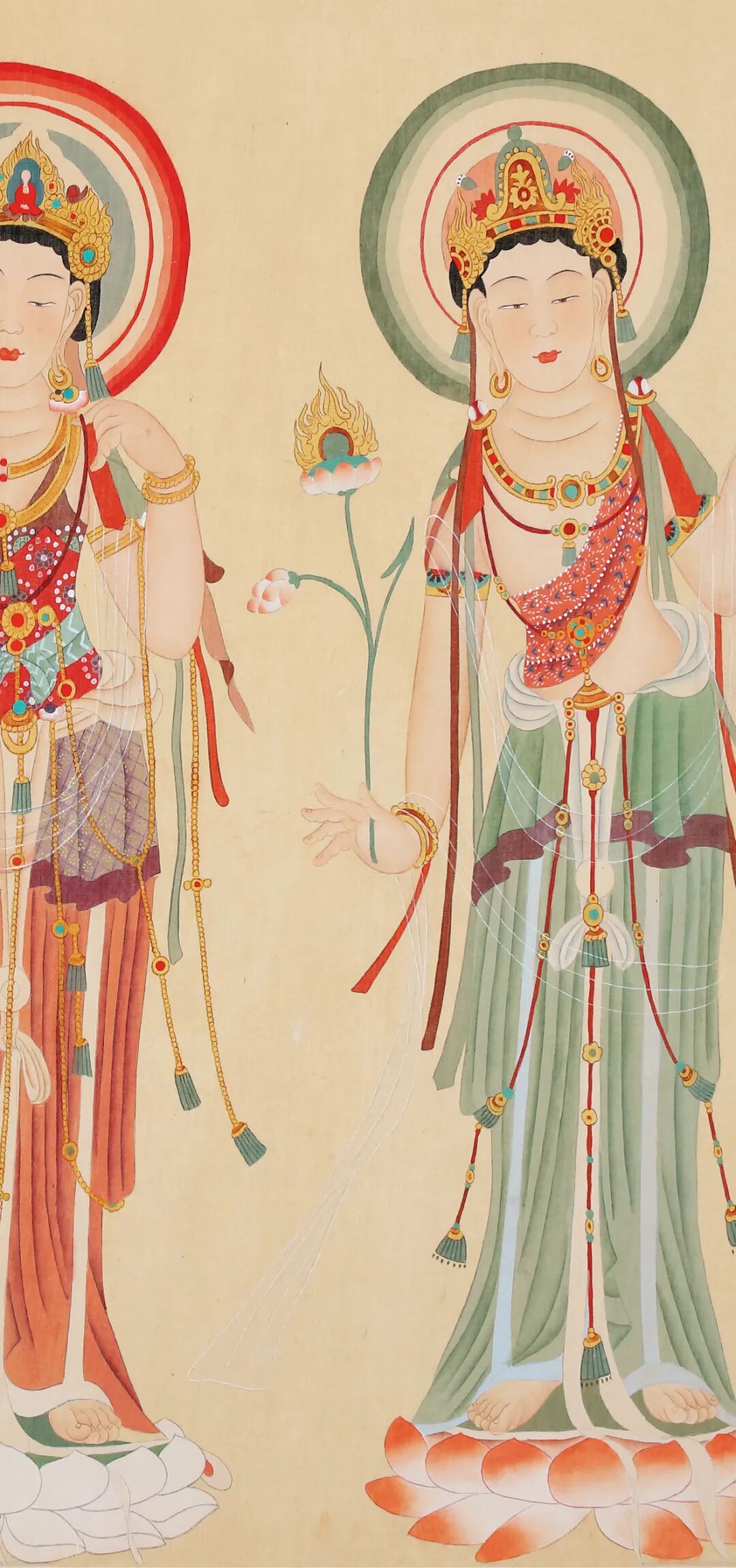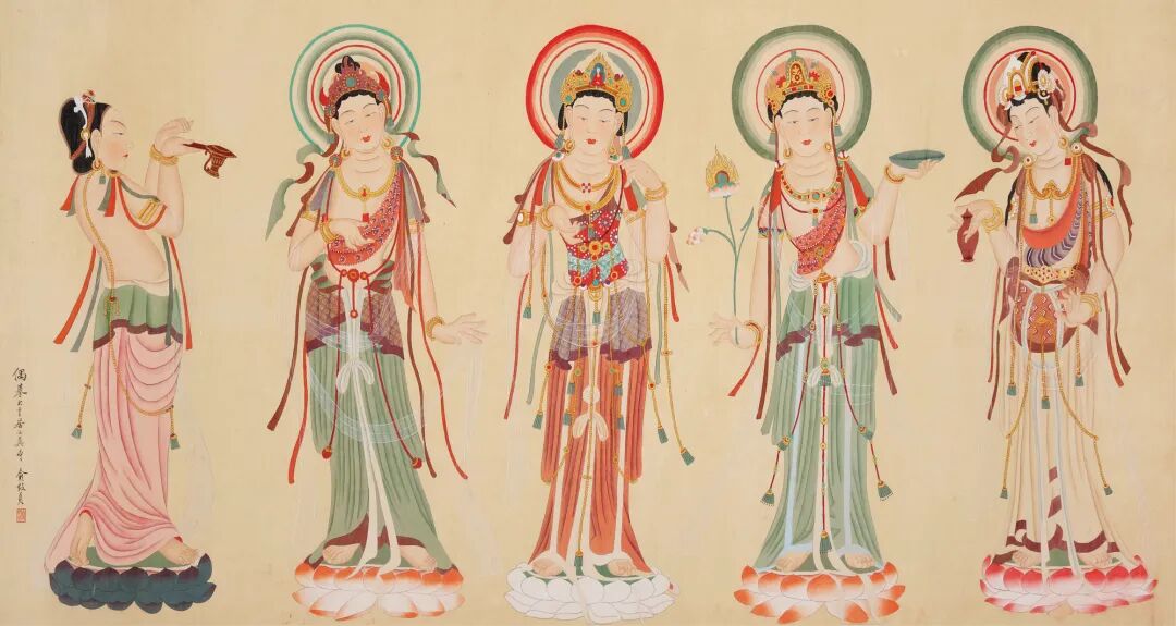1.此幅乃当年大千报我为其造象之作,时吾二人皆在北平。琴斋仁兄愿出所藏大千黄山白龙潭幅相与交换,用增重两家墨缘,欣然奉命,并记本事。廿七年初冬。悲鸿。钤印:悲鸿