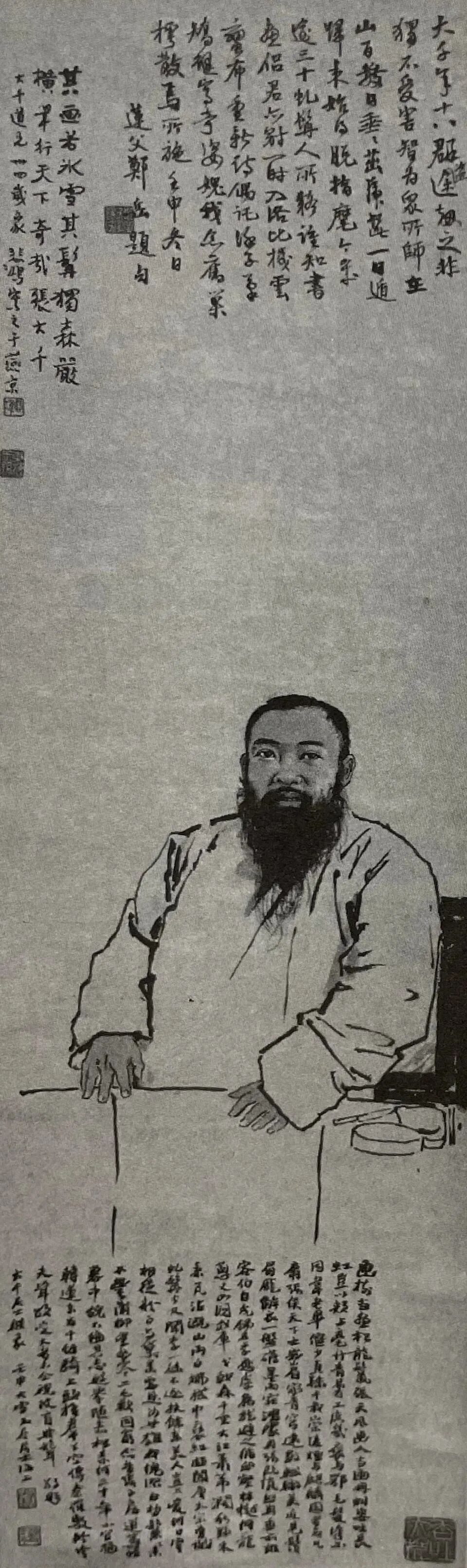 1932年,徐悲鸿在北平专门绘《张大千三十四岁画像》赠大千。