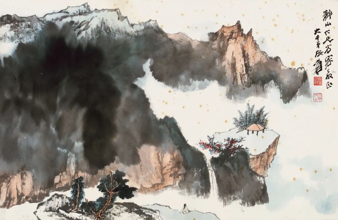 1.山中一夜雨,树杪百重泉。甲申夏日,仿董北苑溪山半幅笔法。吴湖帆。