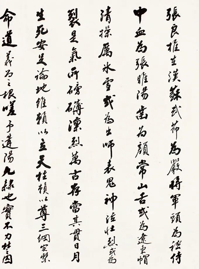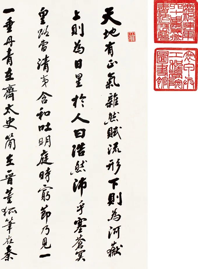 释文:天地有正气,杂然赋流形。下则为河岳,上则为日星。於人曰浩然,沛乎塞苍冥。皇路当清夷,含和吐明庭。时穷节乃见,一一垂丹青。在齐太史简,在晋董狐笔。在秦张良椎,在汉苏武节。为严将军头,为嵇侍中血。为张睢阳齿,为颜常山舌。或为辽东帽,清操厉冰雪。或为出师表,鬼神泣壮烈。或为裂。是气所磅礴,凛烈万古存。当其贯日月,生死安足论。地维赖以立,天柱赖以尊。三纲实系命,道义为之根。嗟予遘阳九,隶也实不力。楚囚缨其冠,传车送穷北。鼎镬甘如饴,求之不可得。阴房阒鬼火,春院闭天黑。牛骥同一皂,鸡栖凤凰食。一朝蒙雾露,分作沟中瘠。如此再寒暑,百疠自辟易。嗟哉沮洳场,为我安乐国。岂有他缪巧,阴阳不能贼。顾此耿耿在,仰视浮云白。悠悠我心忧,苍天曷有极。哲人日已远,典刑在夙昔。风檐展书读,古道照颜色。