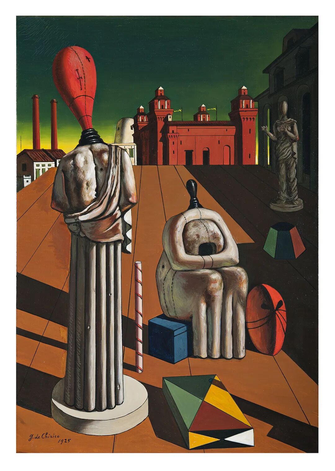 乔尔乔·德·基里科是一位用绘画表达哲思的艺术家,他所属的派别是艺术史上一个充满谜语与暗喻的存在——“形而上学画派”,其作品对超现实主义也产生过极大的影响。