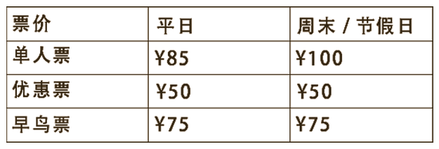 (1)身高1.3米(不含)以上——18周岁(含)未成年人、全日制大学本科及以下学历学生凭有效证件购票;