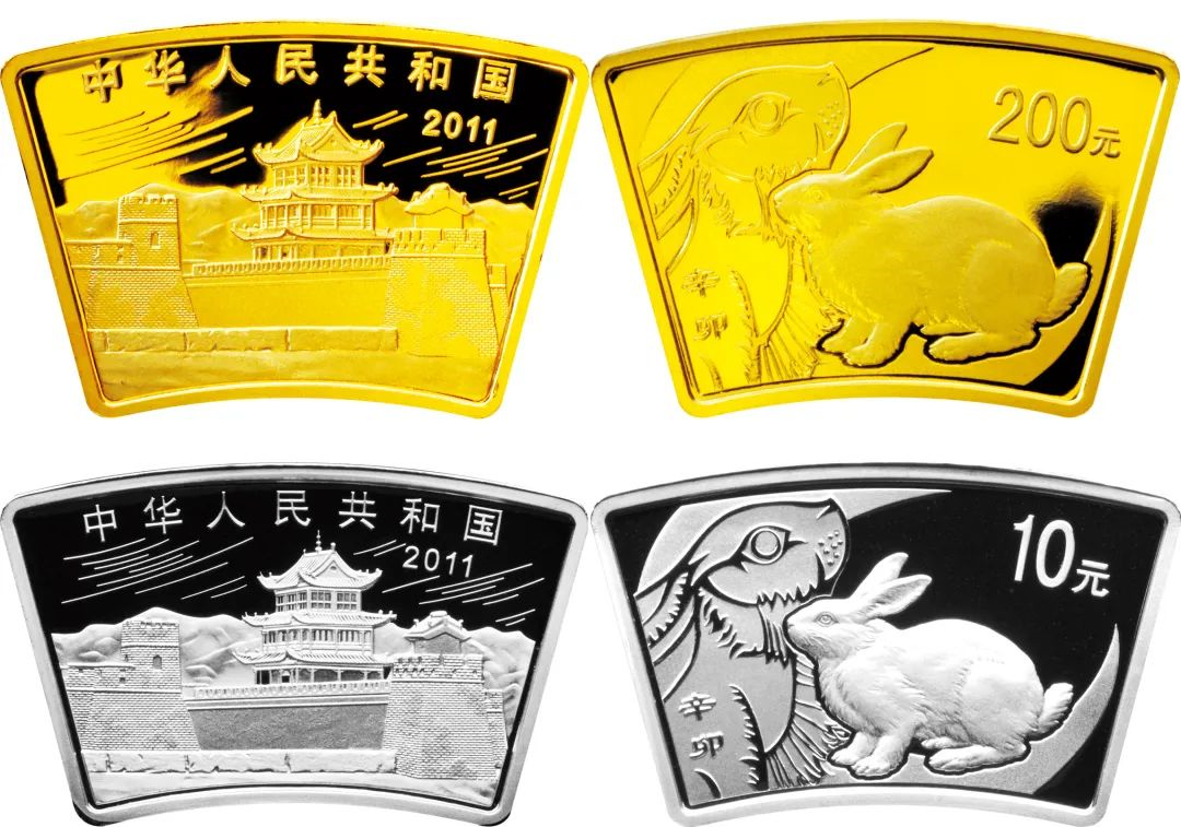 第三轮兔年的两枚扇形金银币就是这一系列的收官之作,正面图案均为甘肃嘉峪关长城。