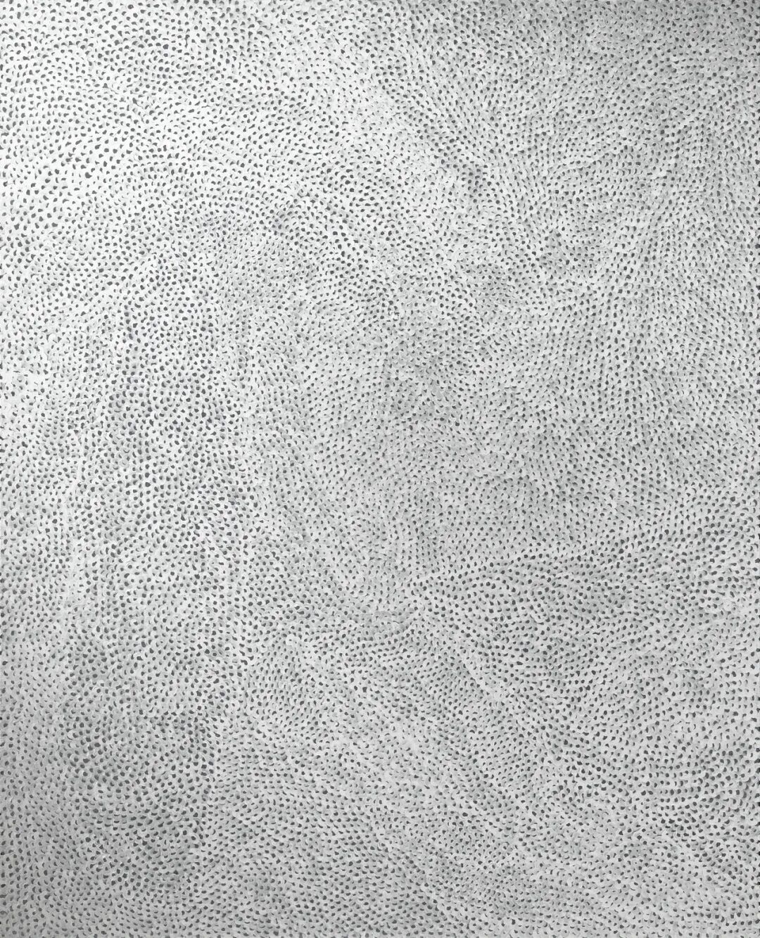 对草间来说,艺术是一种“自我消解”的手段,在艺术中,她“被还原回归到永恒的时间和絶对的空间无限性当中。”这件创作于草间弥生事业的顶峰时期的作品,充分表现了艺术家在结合自我现实的同时,对宇宙的无限性的执着追索。