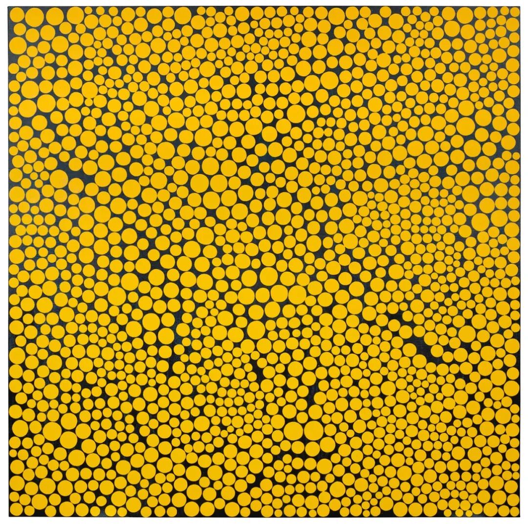 草间弥生将圆点视作宇宙和自我消融之道,在《圆点的痴迷(FOPMU) 》中,她以代表性的明黄色将这一元素呈现于巨幅画布之上,可谓“圆点”系列中的经典巨作。今年上半年,《夕阳(TOXAT)》在香港佳士得创下草间弥生“圆点”系列世界拍卖纪录,而本作尺幅为它的1.7倍。