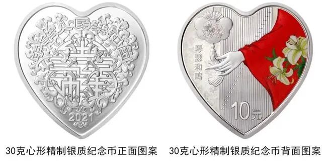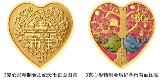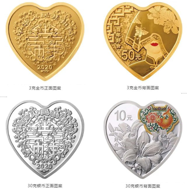 中国人民银行自2015年开始发行吉祥文化金银纪念币,包括2021吉祥文化金银纪念币在内已连续发行了7组。吉祥文化金银纪念币,使用健康长寿、生儿育女、美满婚姻、吉祥幸福四大主题,其中美满婚姻一组,设计唯美精致,是为爱情的美好象征,被视为送情侣。