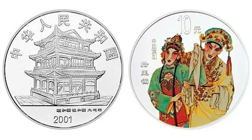 2001年中国京剧艺术彩色金银纪念币《拾玉镯》