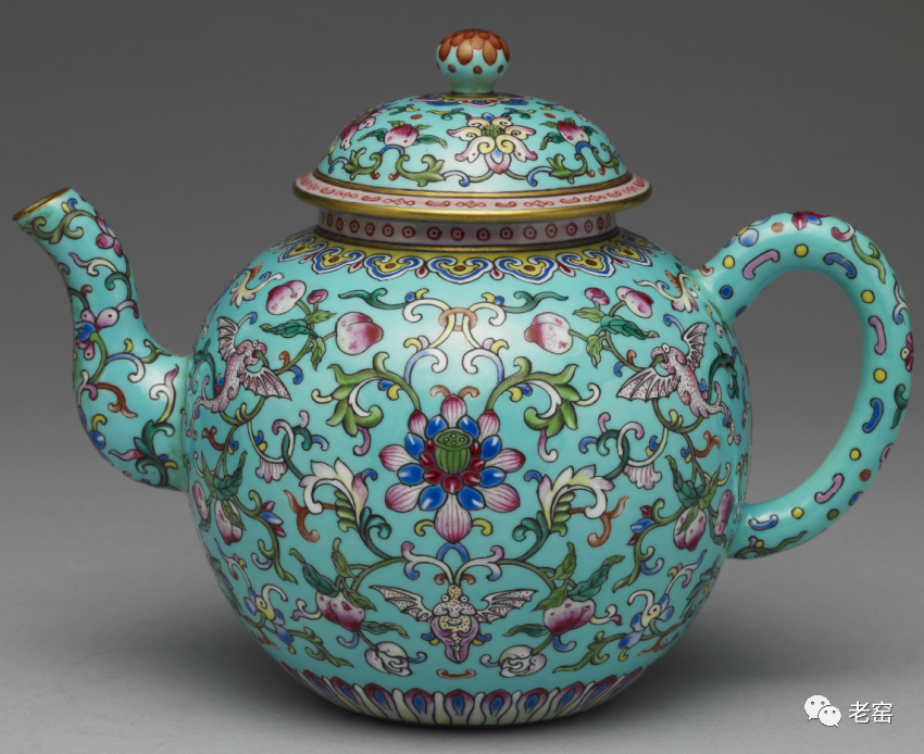 清乾隆 松石地粉彩连年福寿纹茶壶 台北故宫博物院馆藏