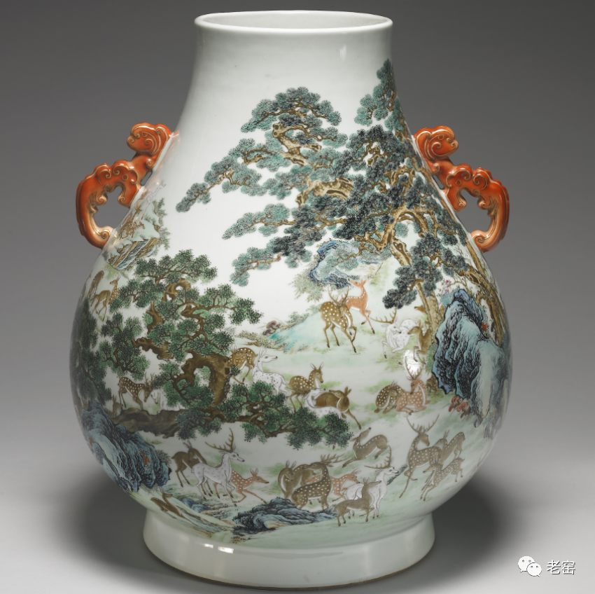 清乾隆 粉彩双耳百鹿尊(侧面) 台北故宫博物院馆藏