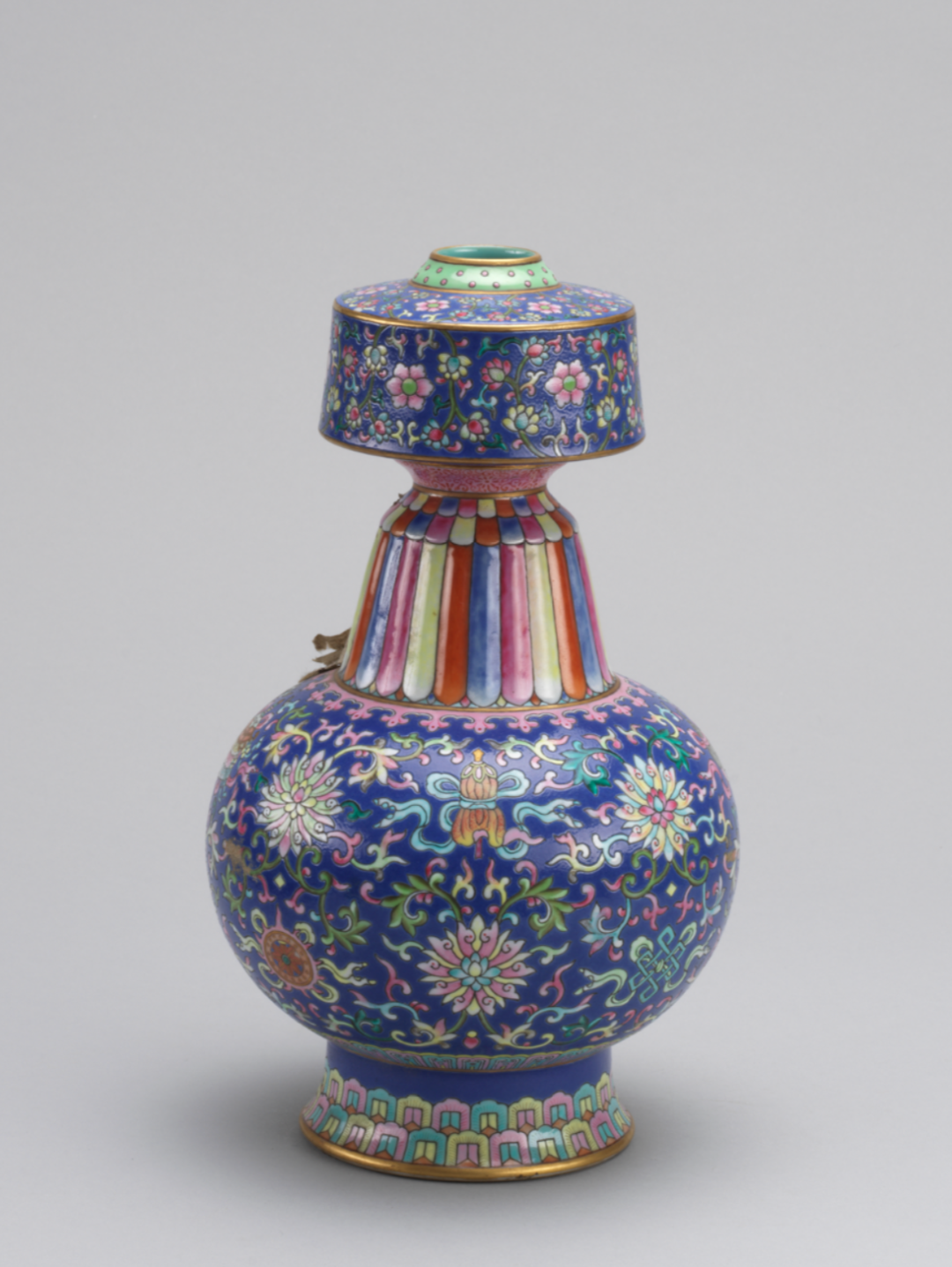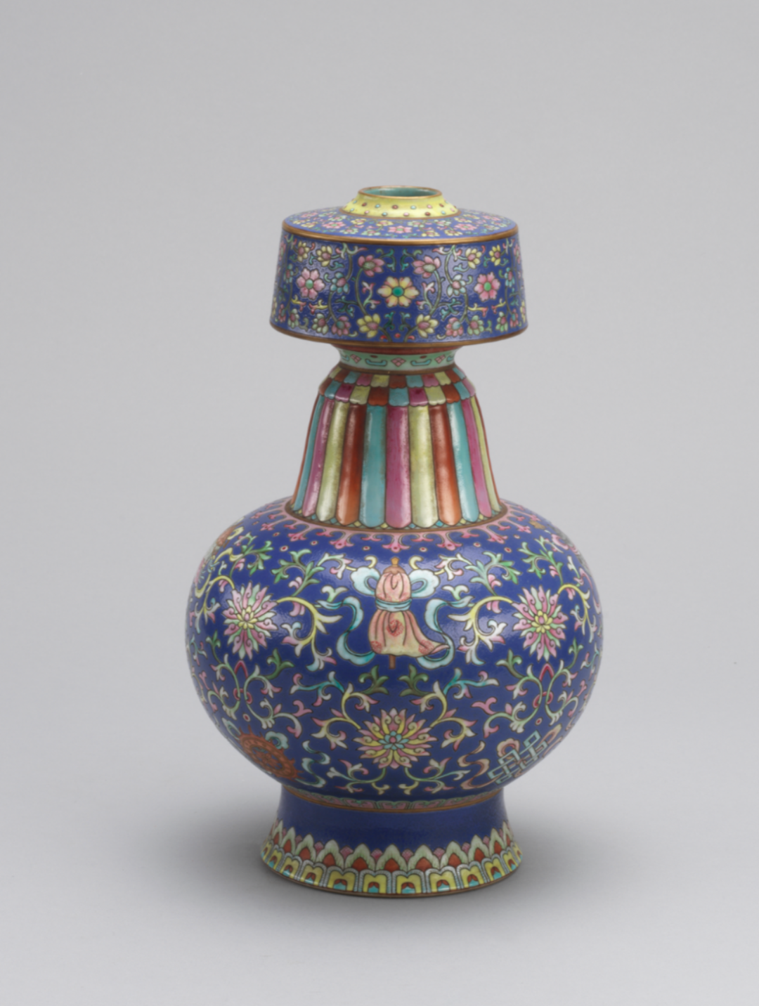 清乾隆 粉彩番莲纹蓝地方壶(图1) 台北故宫博物院馆藏