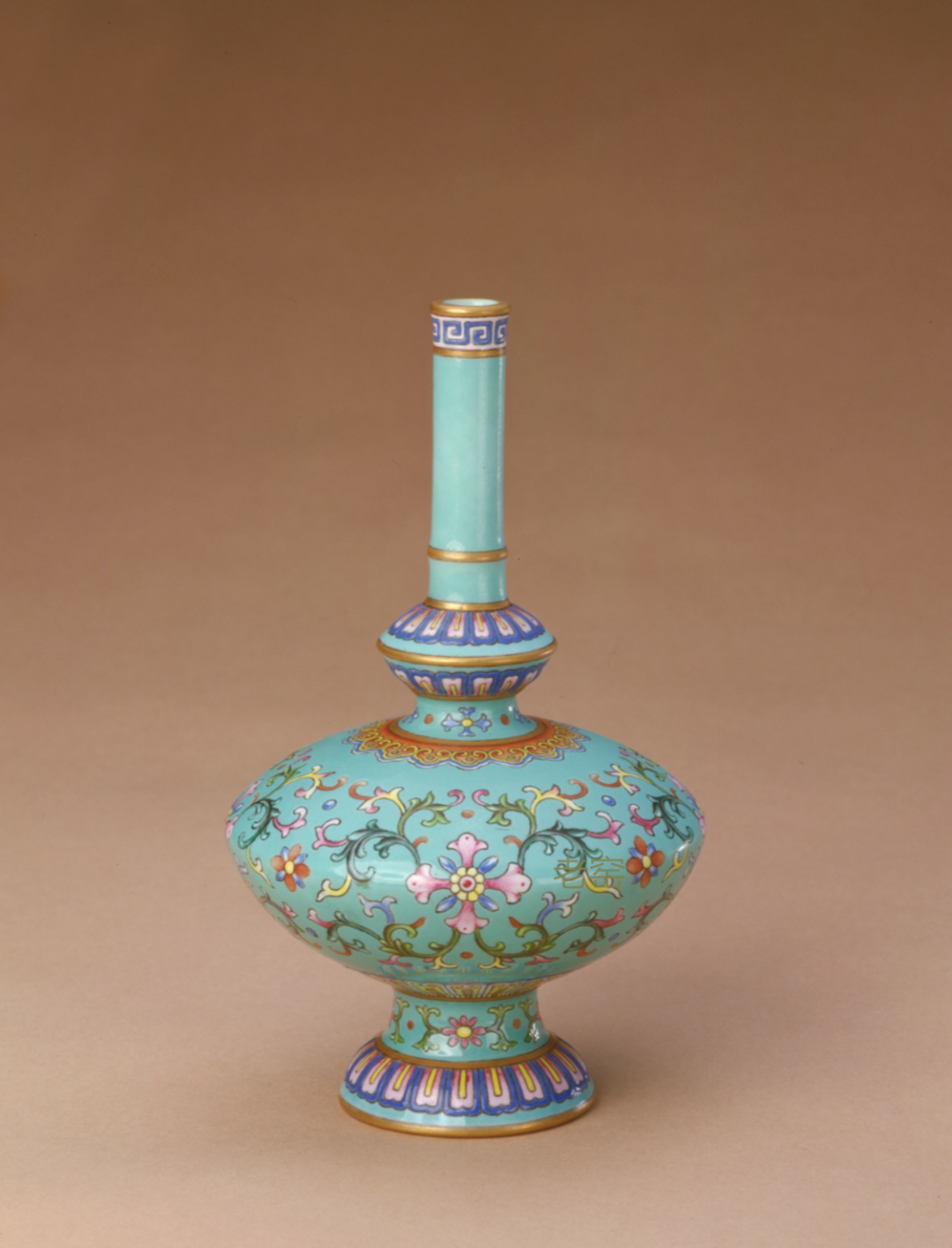 清乾隆 粉彩番莲纹蓝地方壶(图2) 台北故宫博物院馆藏