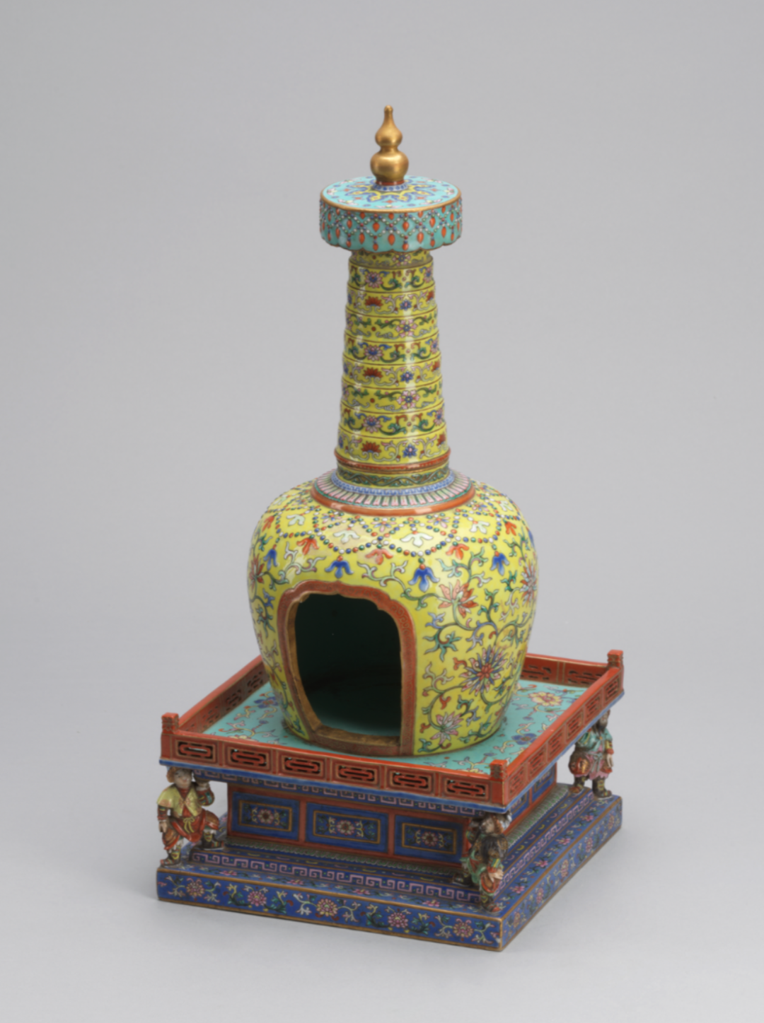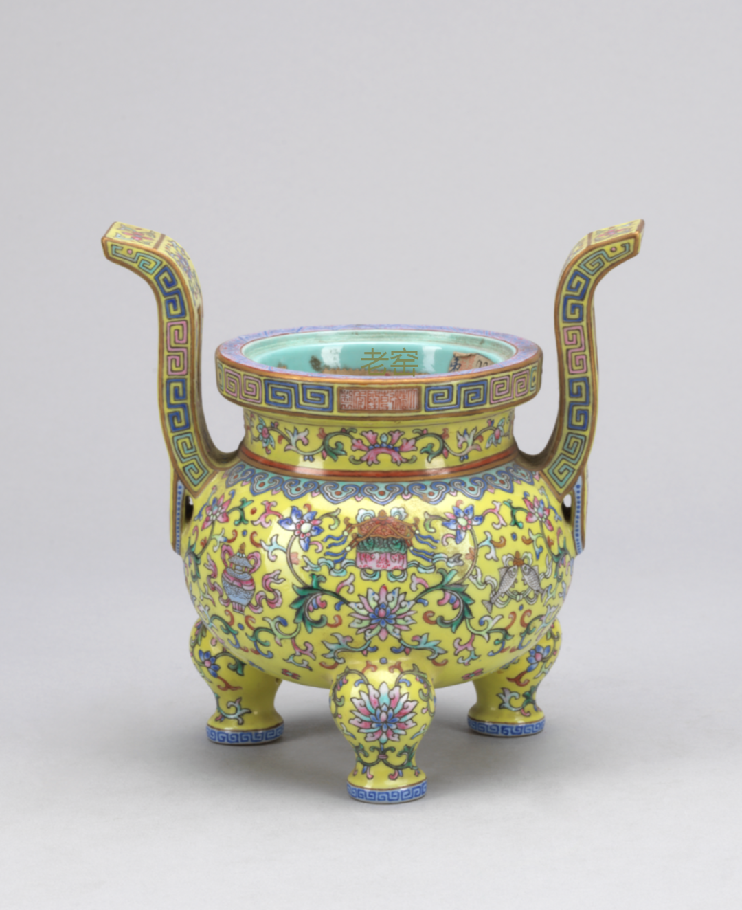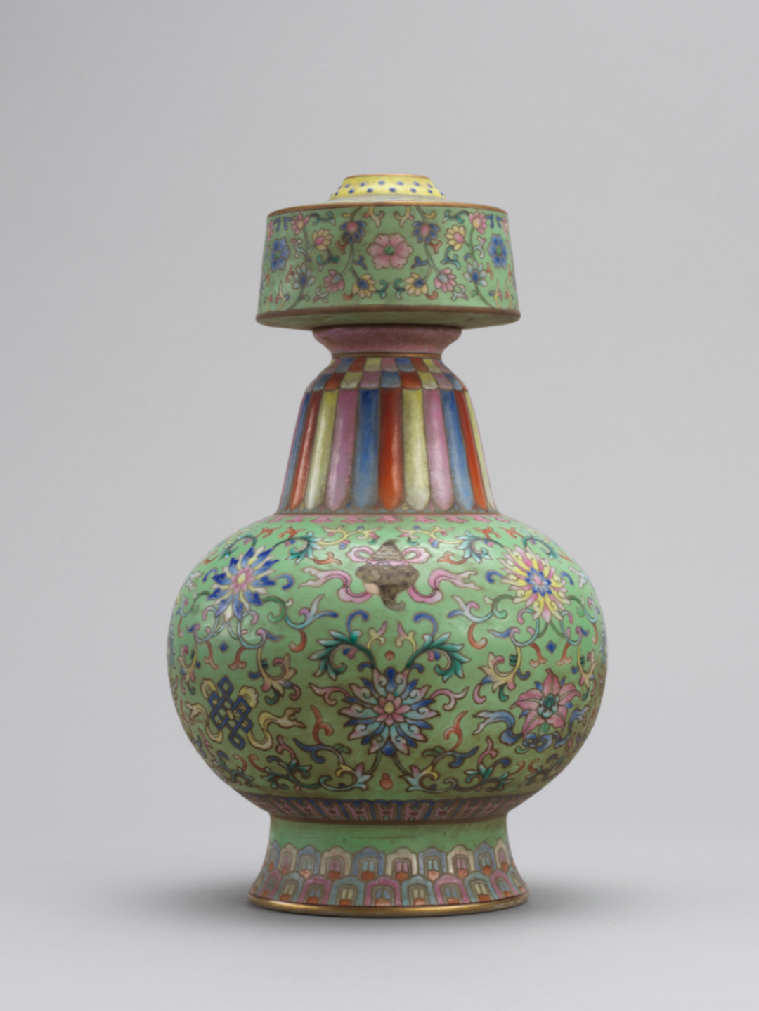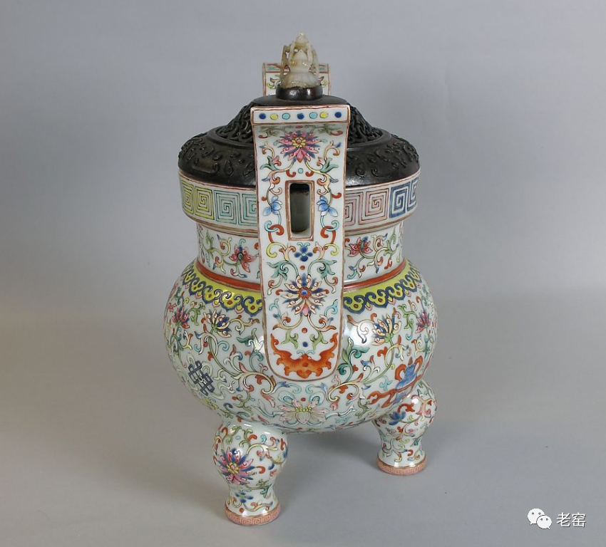 清嘉庆 粉彩佛教八宝纹鼎式炉(侧面) 美国大都会博物馆藏