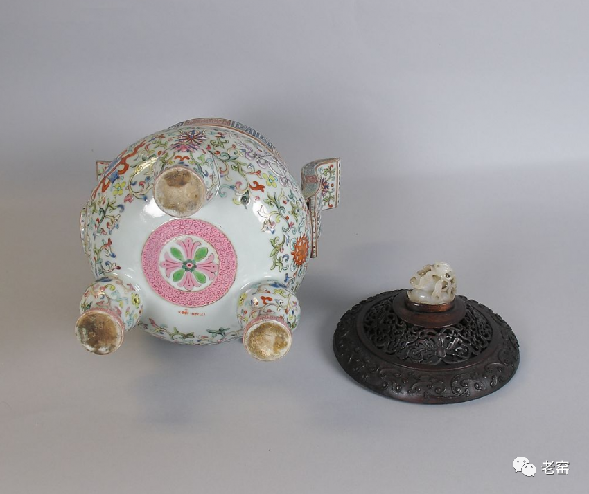 清嘉庆 粉彩佛教八宝纹鼎式炉(底部) 美国大都会博物馆藏
