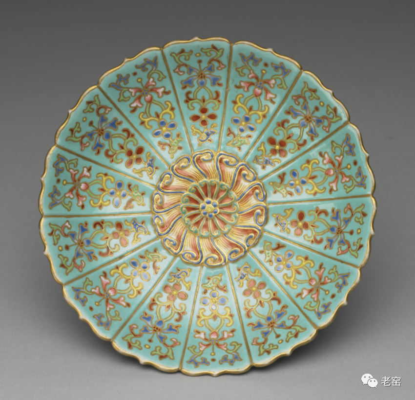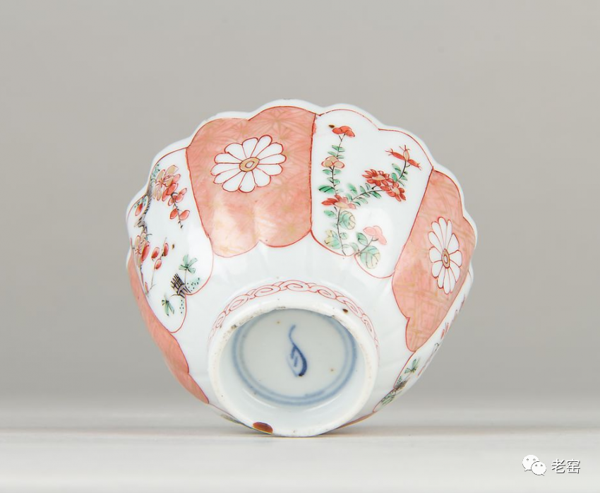 清康熙 矾红粉彩花卉纹菊瓣形杯(背面) 美国大都会博物馆藏