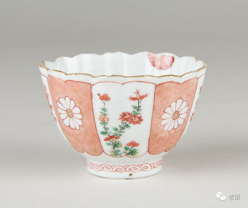 清康熙 矾红粉彩花卉纹菊瓣形杯(正面) 美国大都会博物馆藏