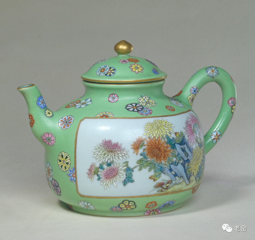 清乾隆 绿地粉彩开光菊石纹茶壶(整体) 北京故宫博物院馆藏