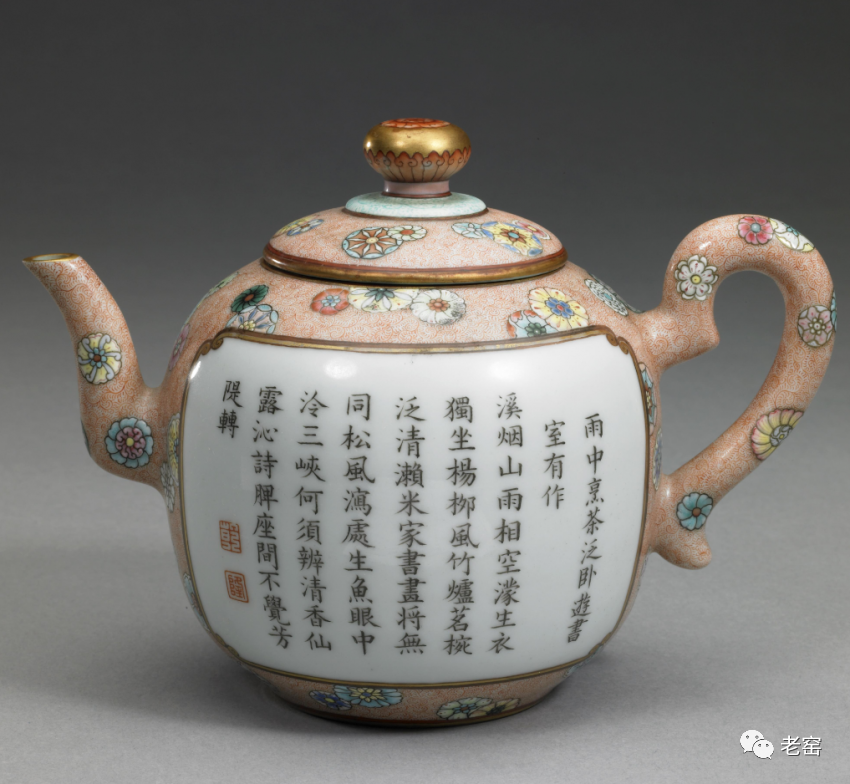 清乾隆 绿地粉彩开光菊石纹茶壶(底款) 北京故宫博物院馆藏