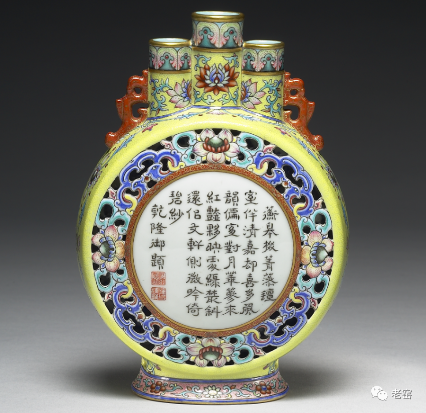 清乾隆 黄地粉彩御题诗文壁瓶(正面) 台北故宫博物院馆藏