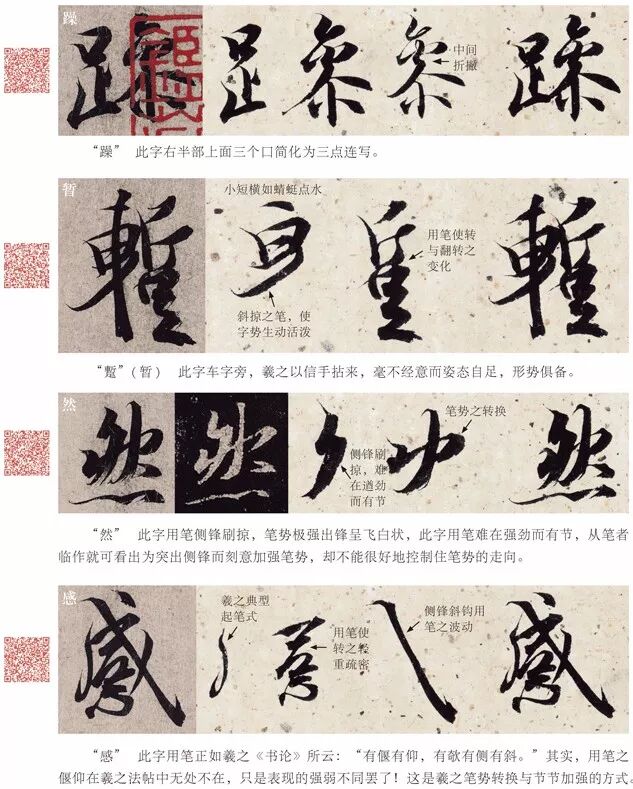 这样一讲解,连着基础技法、魏晋用笔、入笔行笔以及连带映带关系一目了然。继续看看例字,多直观、多简单!