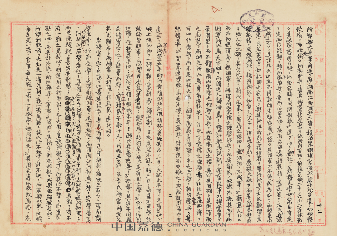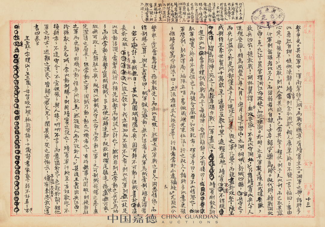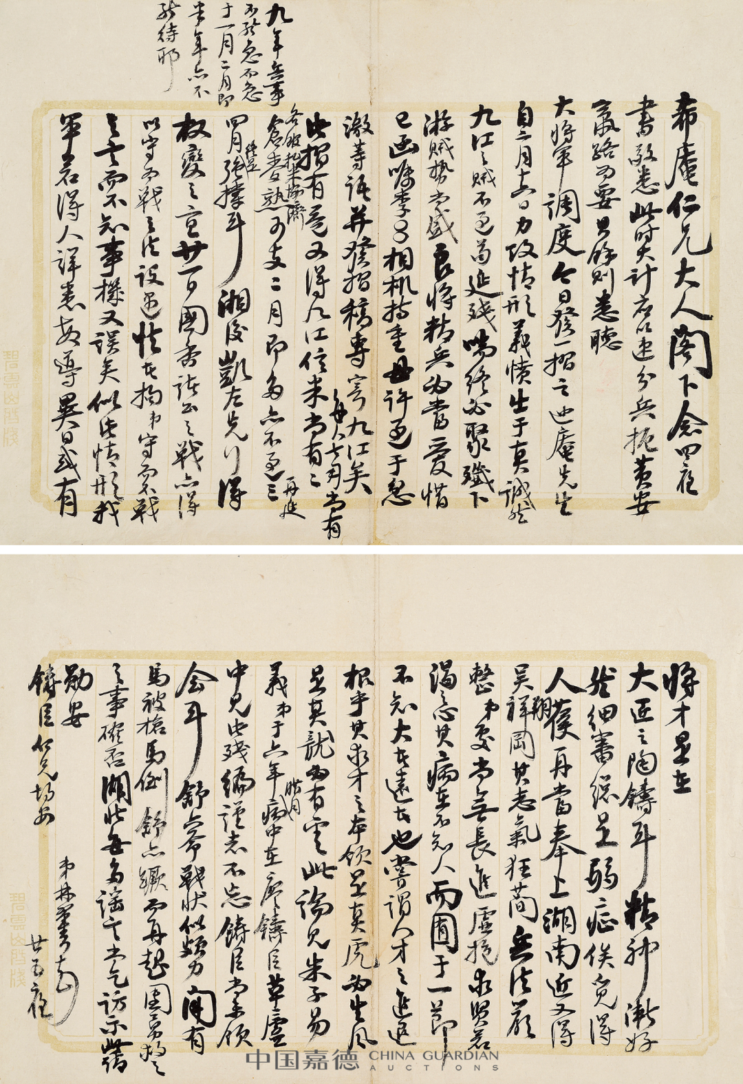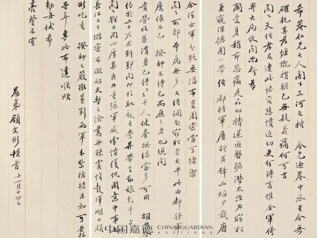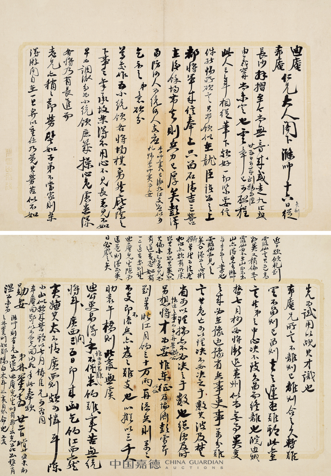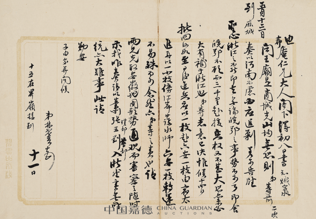 本季嘉德《中国古代书画》日场特别企划,推出“积厚流光——二百年来湖湘名人法书专辑”,汇集清代以来湖南名人及与之有紧密关联的墨迹118件,主体可分为两个部分:“三河之役”前后,湘军将领致李续宾兄弟函札五十五通,以及清代以来湖南政坛、文坛、艺坛名家书法绘画作品六十余件,本专辑全部拍品均为无底价。