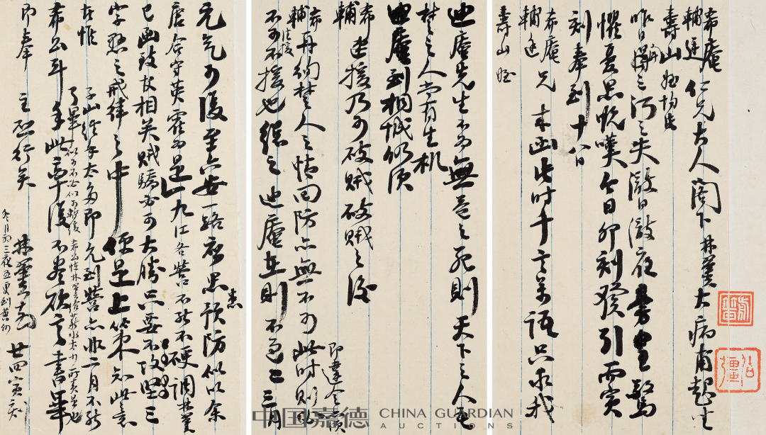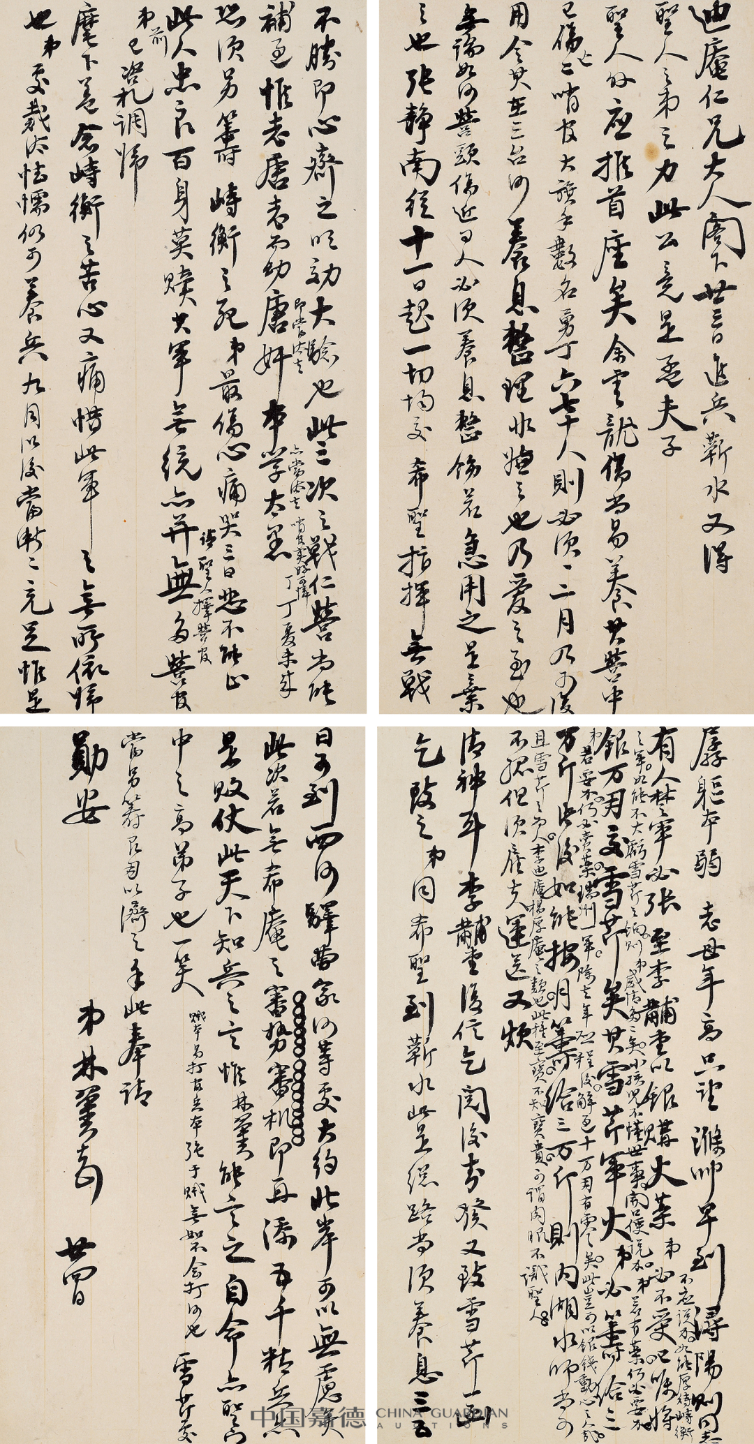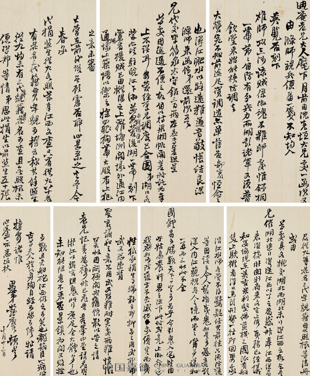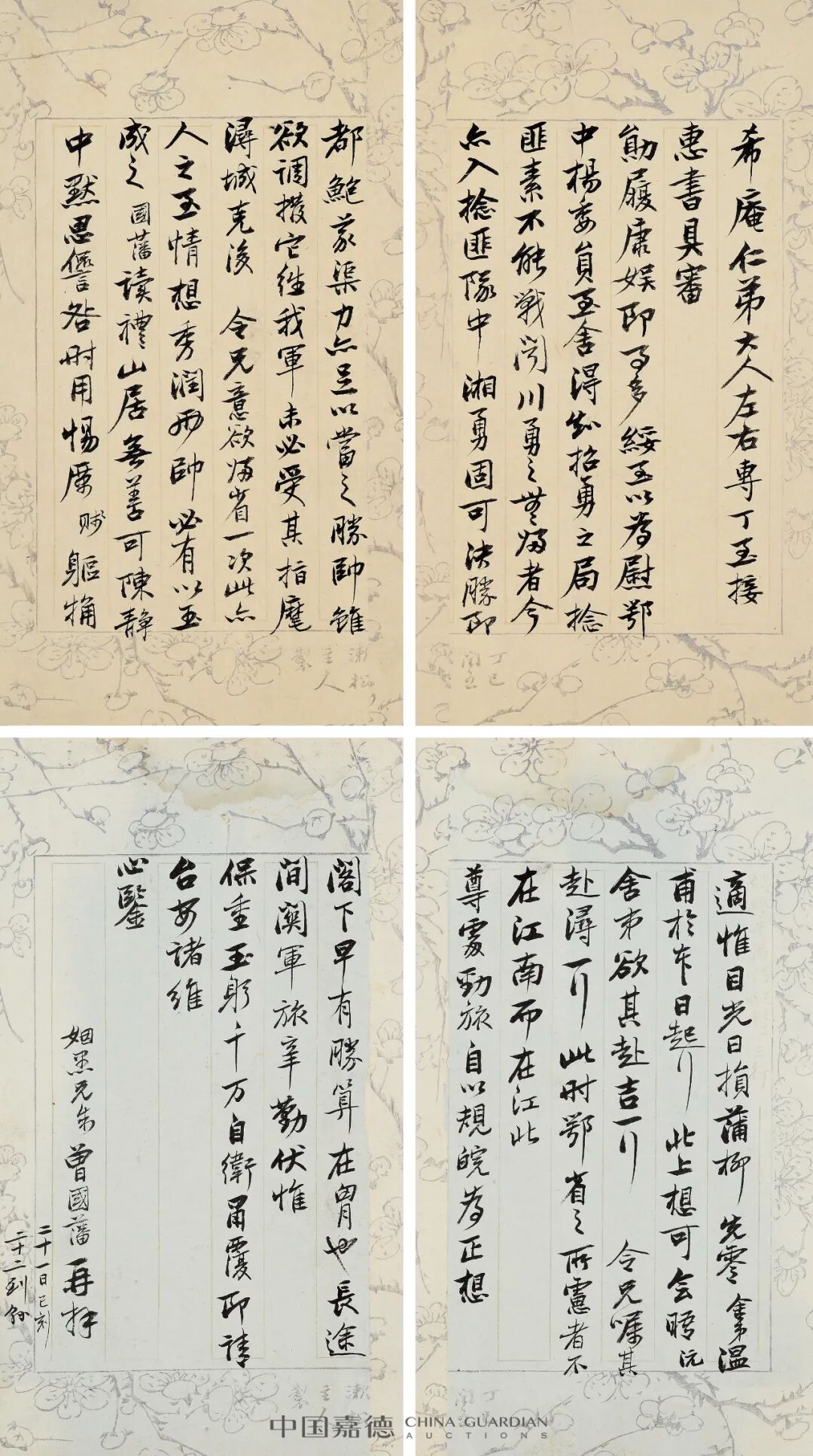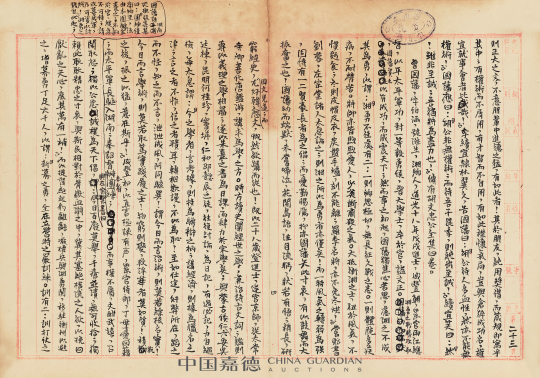 本季嘉德《中国古代书画》日场特别企划,推出“积厚流光——二百年来湖湘名人法书专辑”,汇集清代以来湖南名人及与之有紧密关联的墨迹118件,主体可分为两个部分:“三河之役”前后,湘军将领致李续宾兄弟函札五十五通,以及清代以来湖南政坛、文坛、艺坛名家书法绘画作品六十余件,本专辑全部拍品均为无底价。