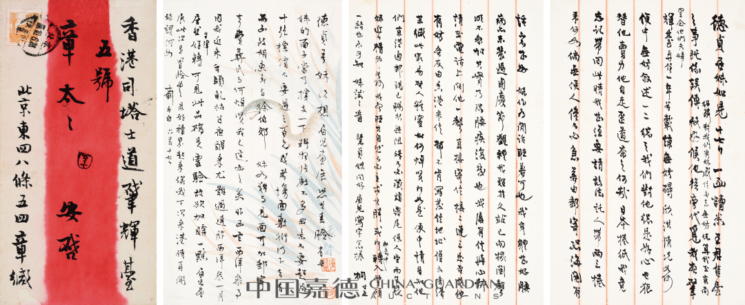 信封:香港司塔士道肈辉台五号。章太太安启。北京东四八条五四。章缄。