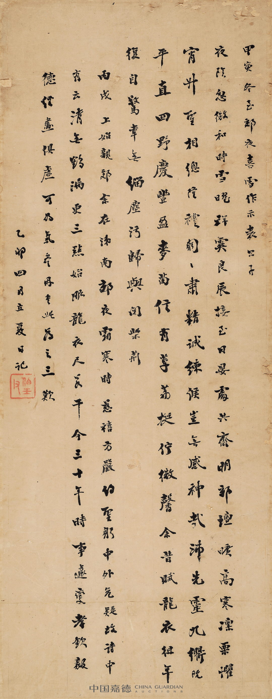 题识:甲寅冬至郊夜喜雪作示袁公子。乙卯四月立夏日记。