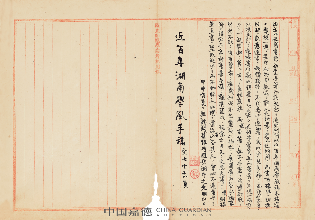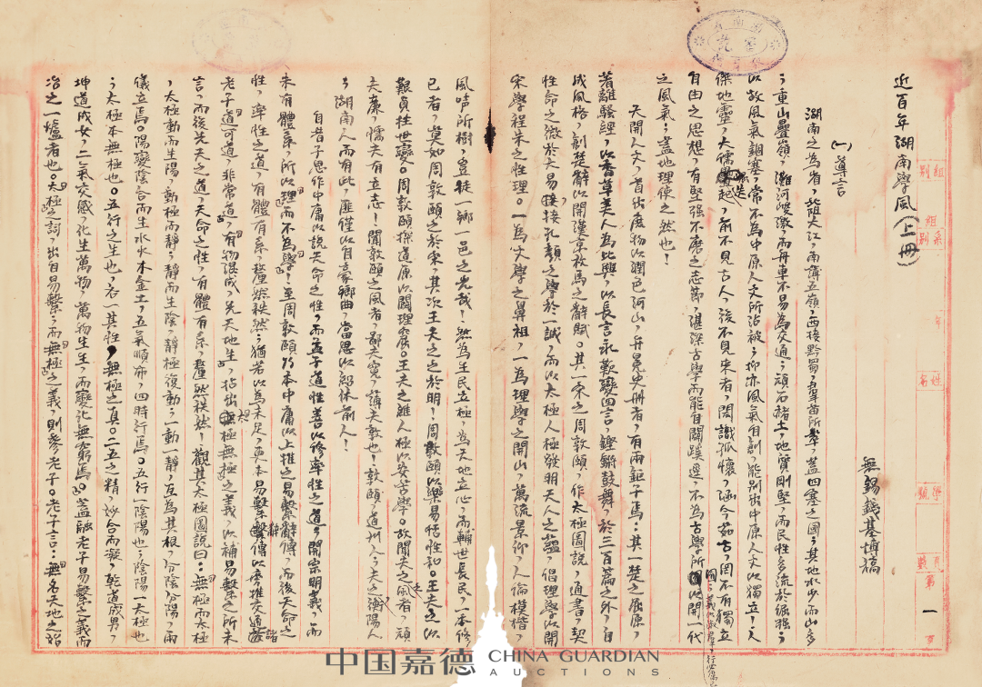 代表作《近百年湖南学风》文稿册