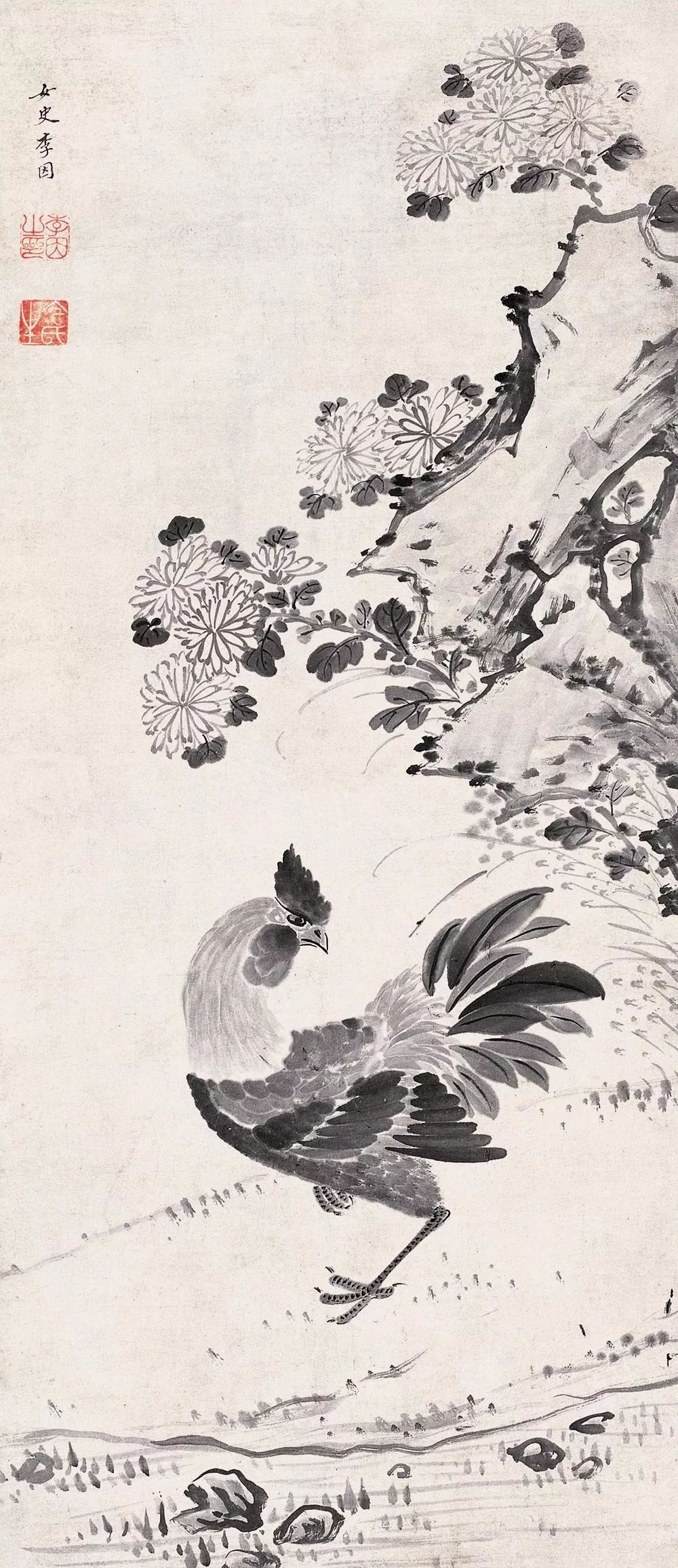 李因 菊鸡图