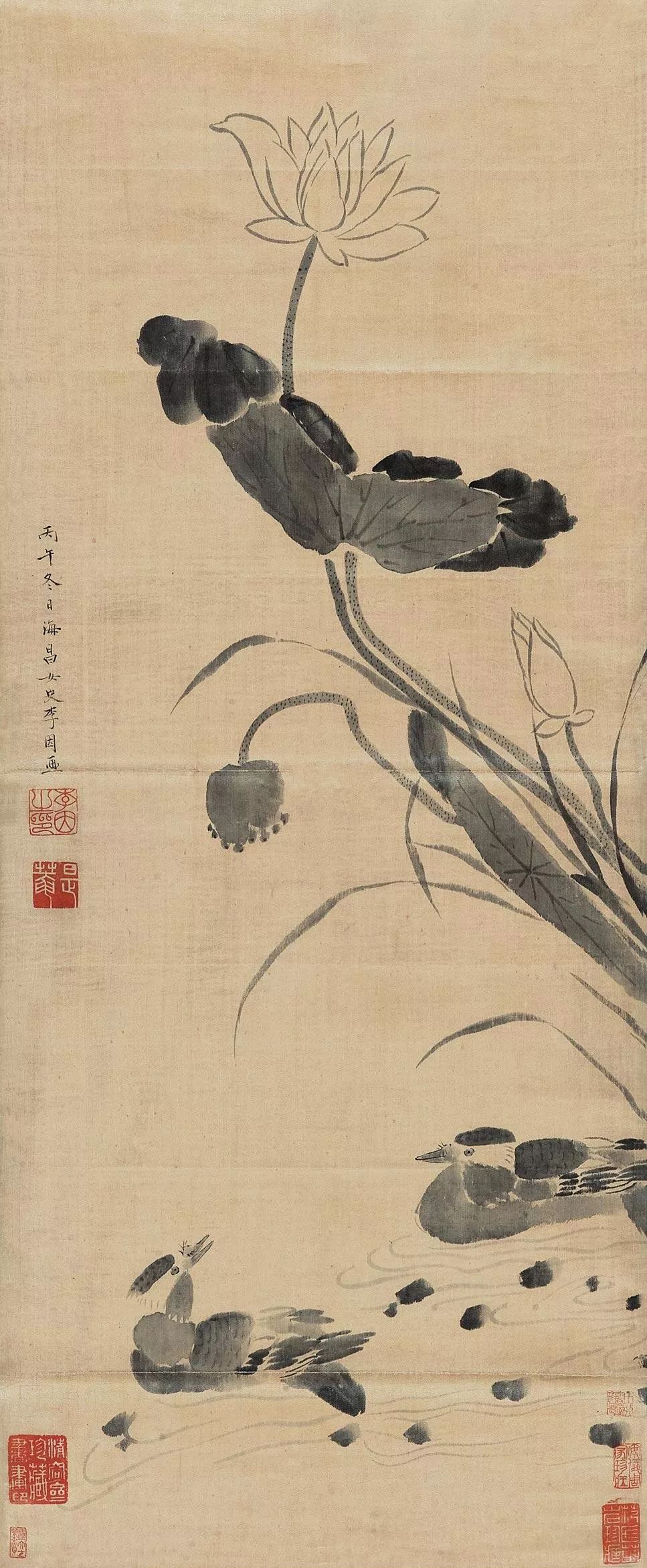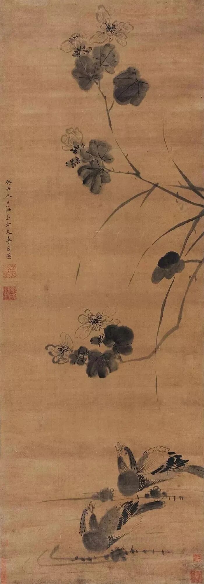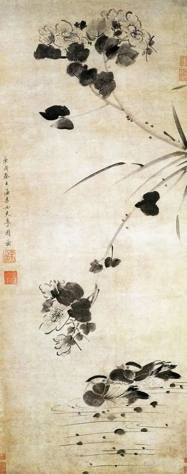 李因《芙蓉鸳鸯图》